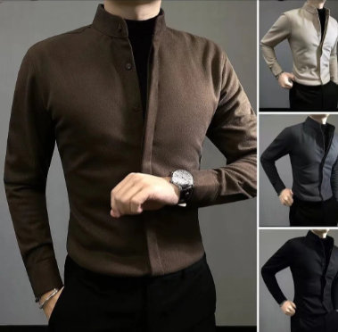 - 毛呢保暖男士長袖襯衫 2025 秋冬新款痞帥高級輕奢修身百搭帥氣襯衣 NT$1299