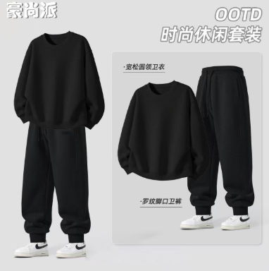 - 新款男士休閒套裝春秋季 2025 男款圓領衛衣無帽大碼運動男衛束腳褲 NT$1180