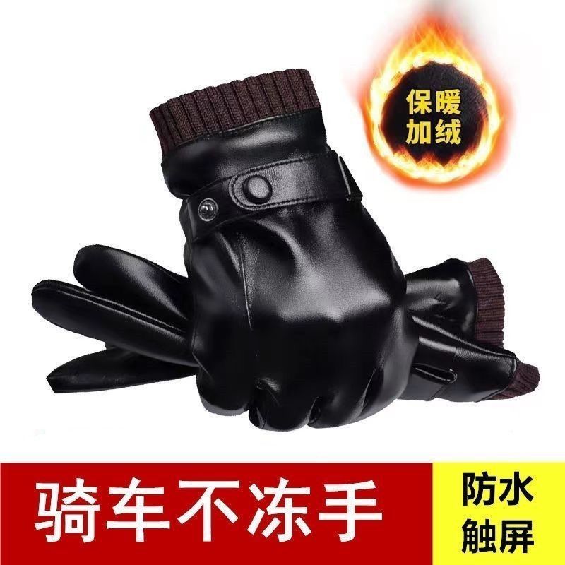 手套男冬騎行加絨加厚保暖防寒皮手套