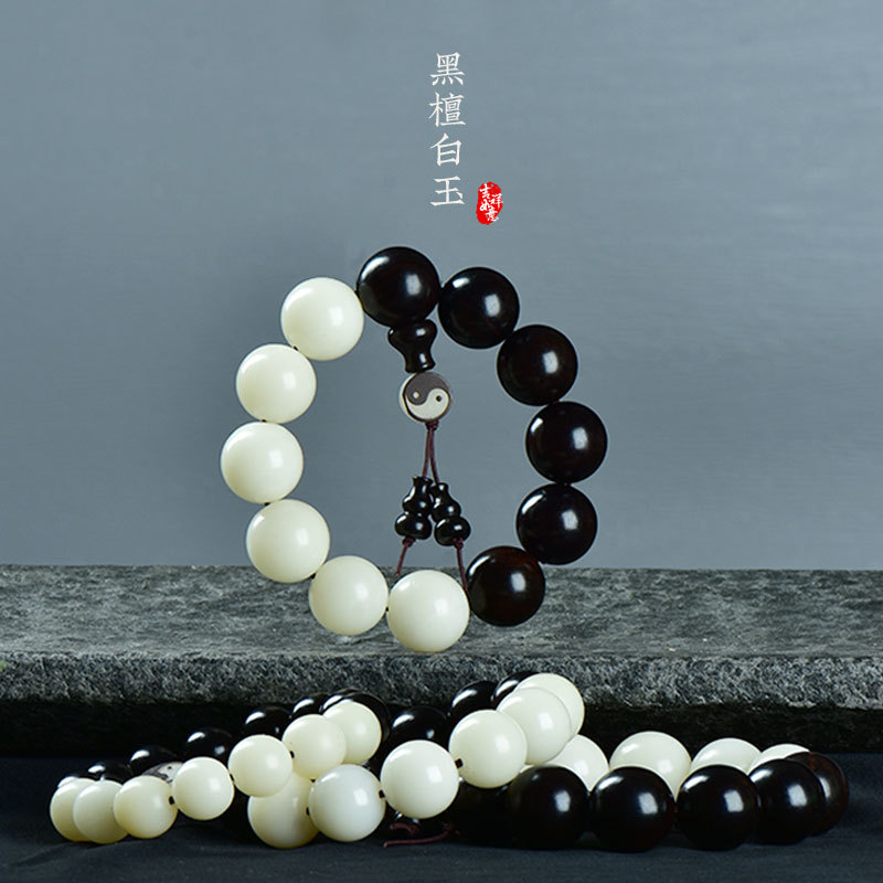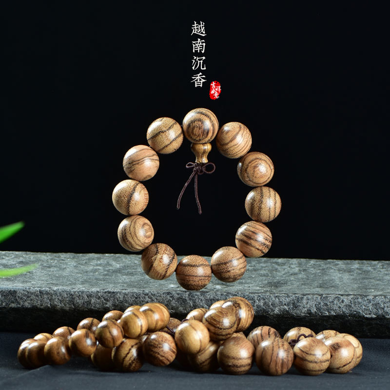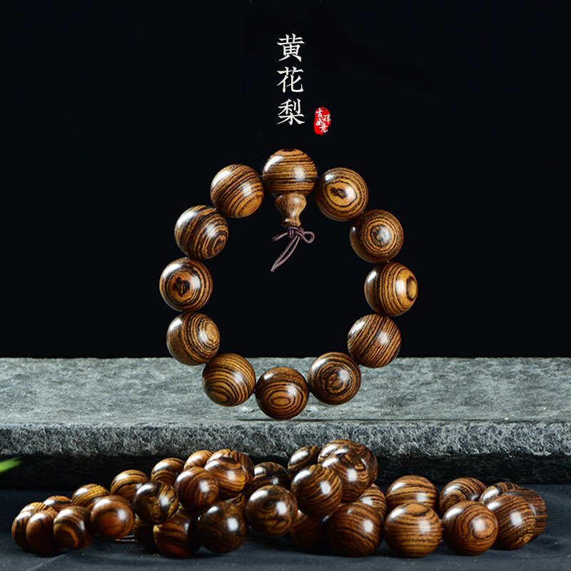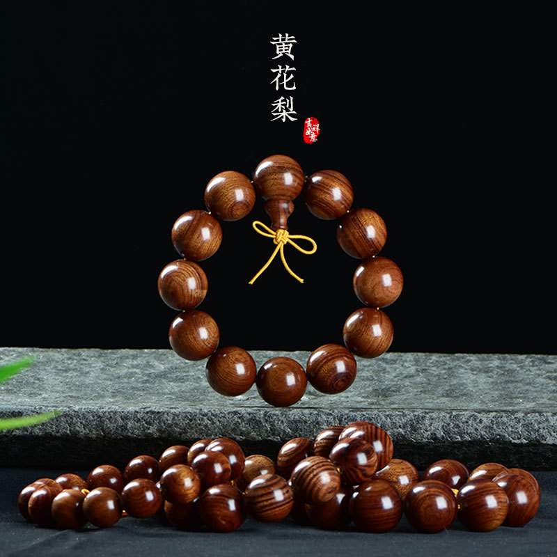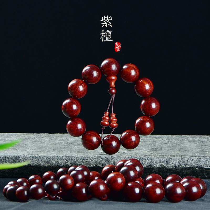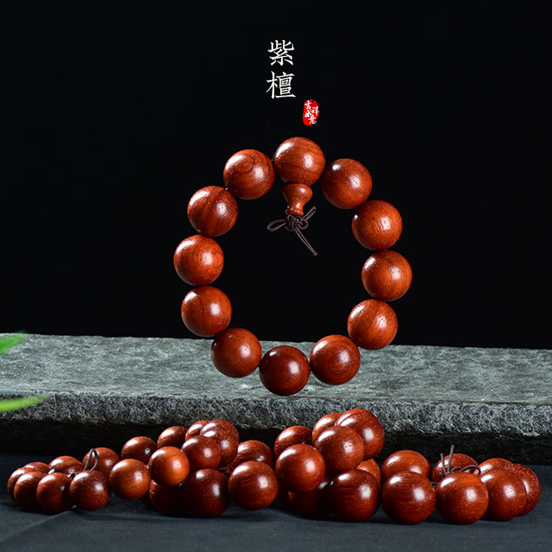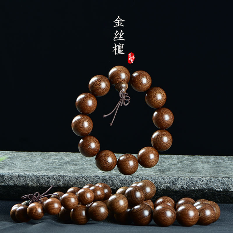 天然檀木佛珠手串男盤玩木頭紫檀黃花梨沉香木質珠子文玩手鏈念珠
