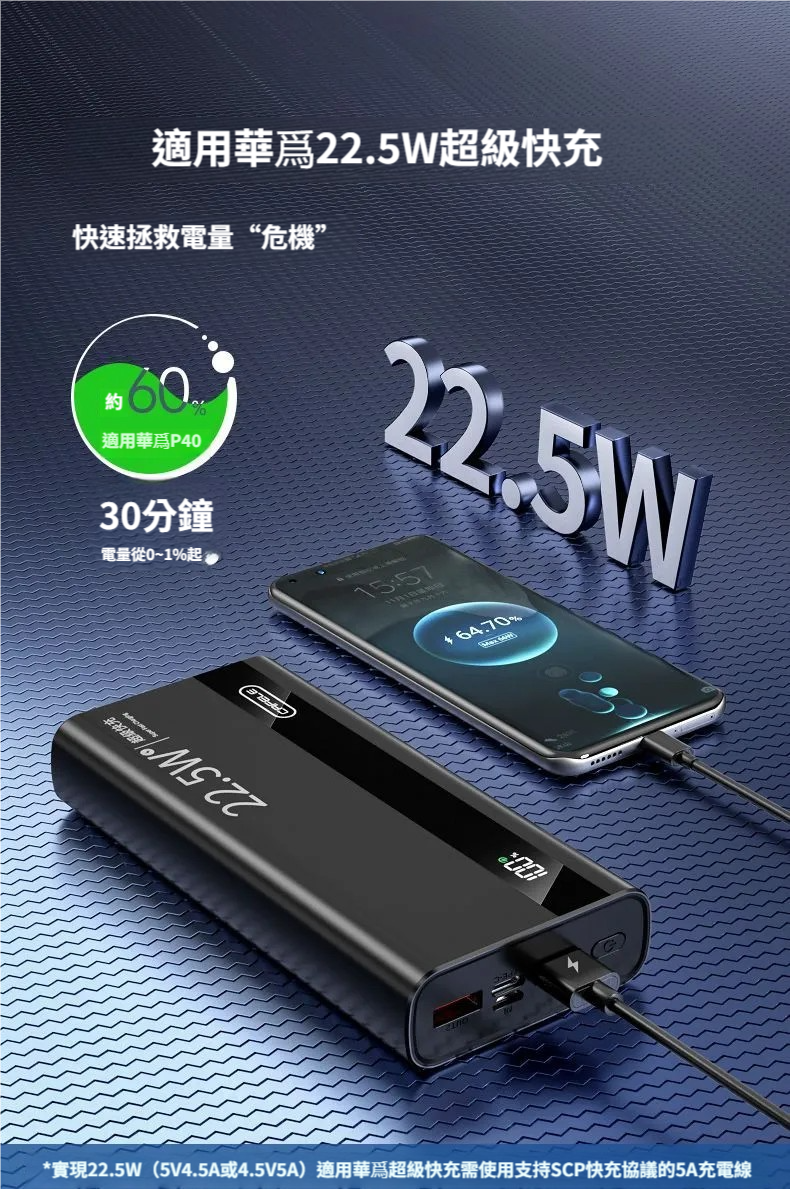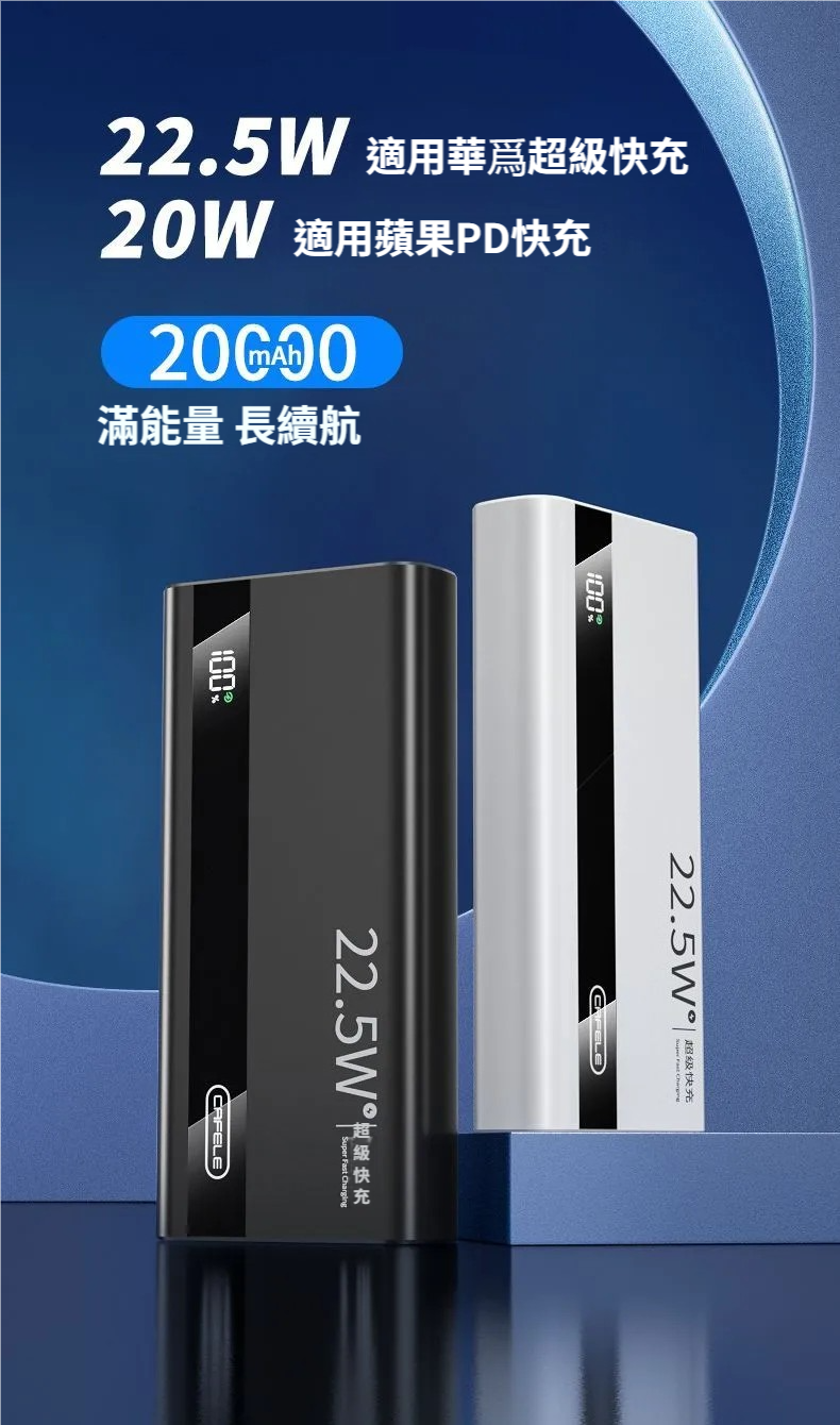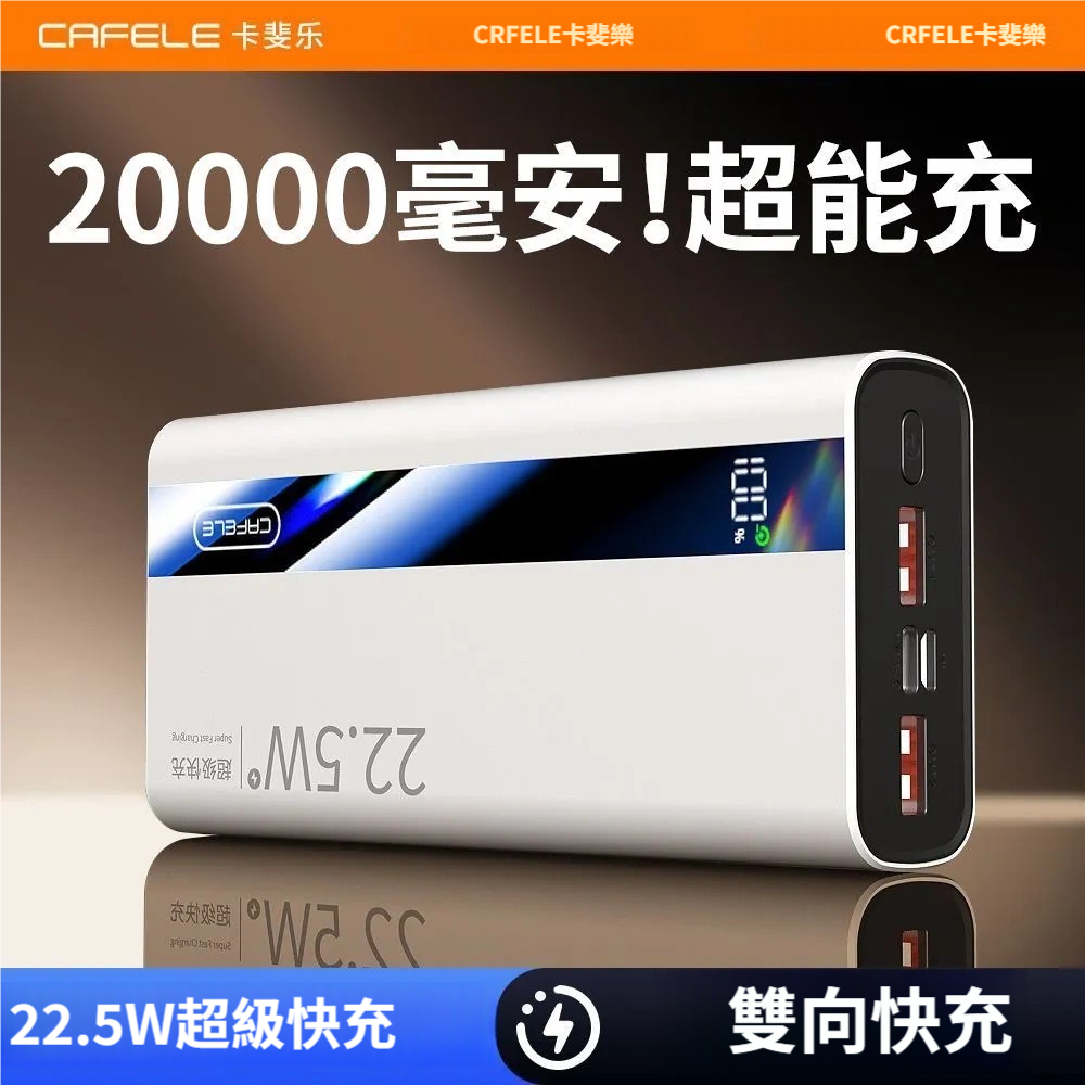 卡斐樂大容量充電寶 20000 毫安 22.5W 超級雙向行動電源