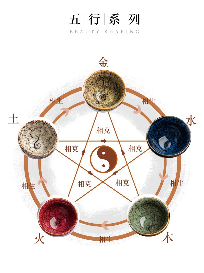 窯變斗笠五行杯
