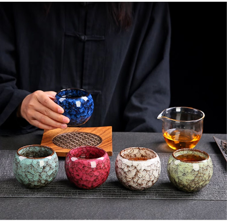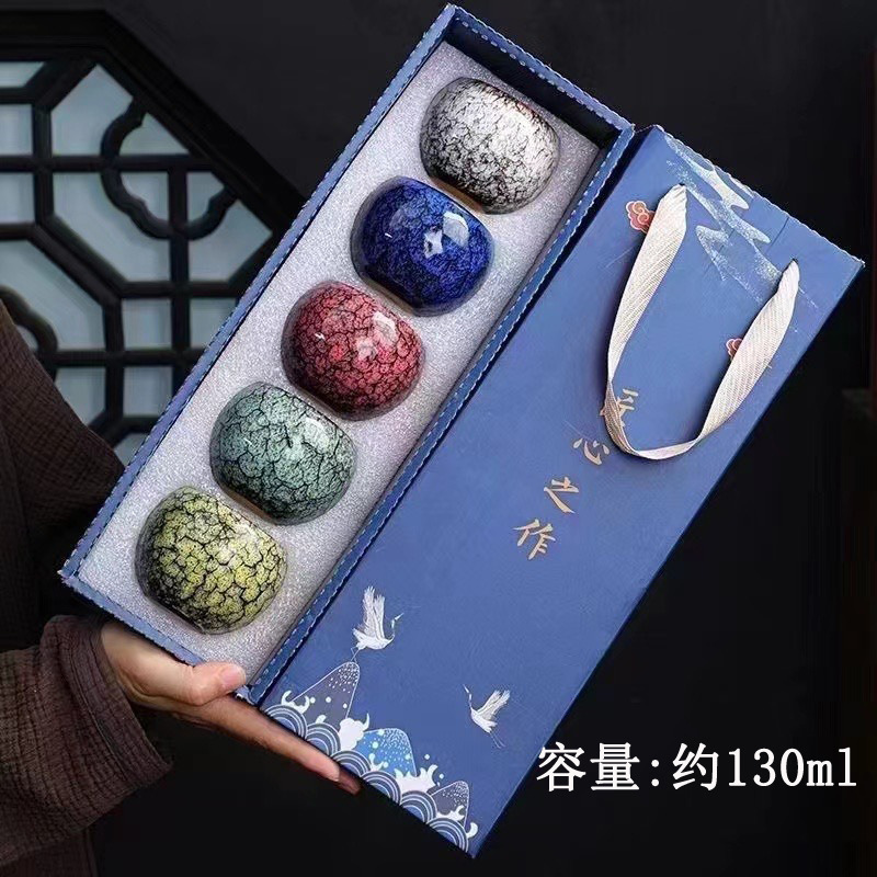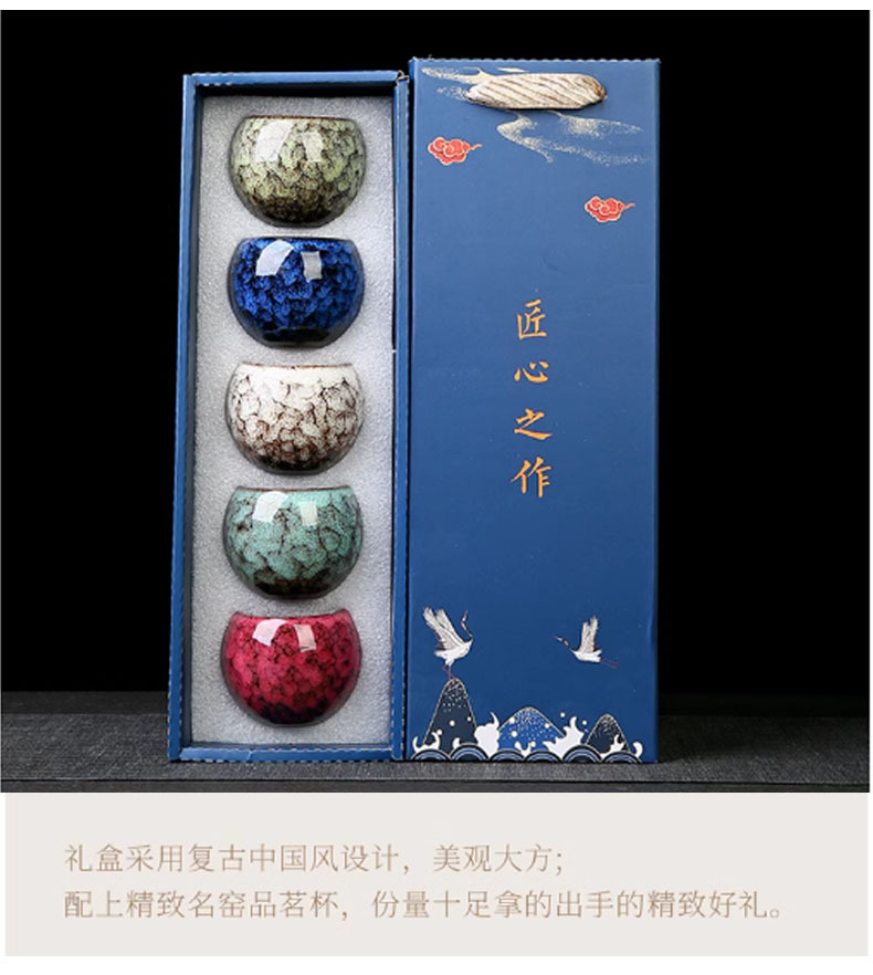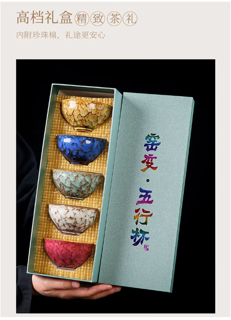 五行杯窯變茶杯套裝功夫茶斗笠杯