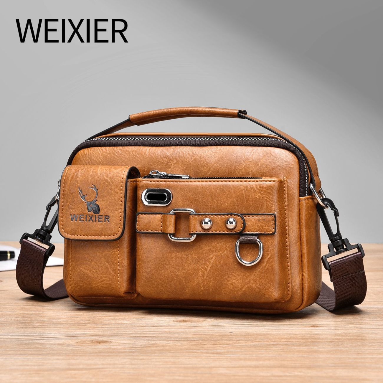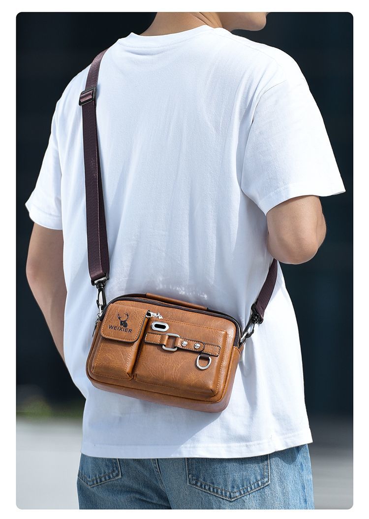 真皮質感老闆斜挎包手拿男士包包