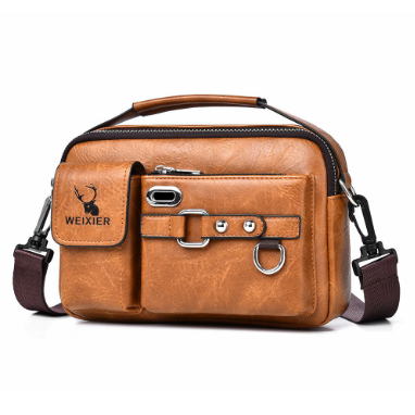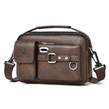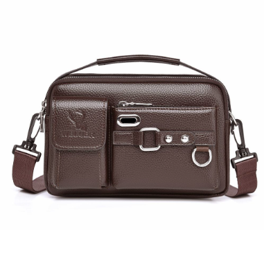 真皮質感老闆斜挎包手拿男士包包 - 荔枝紋深棕色