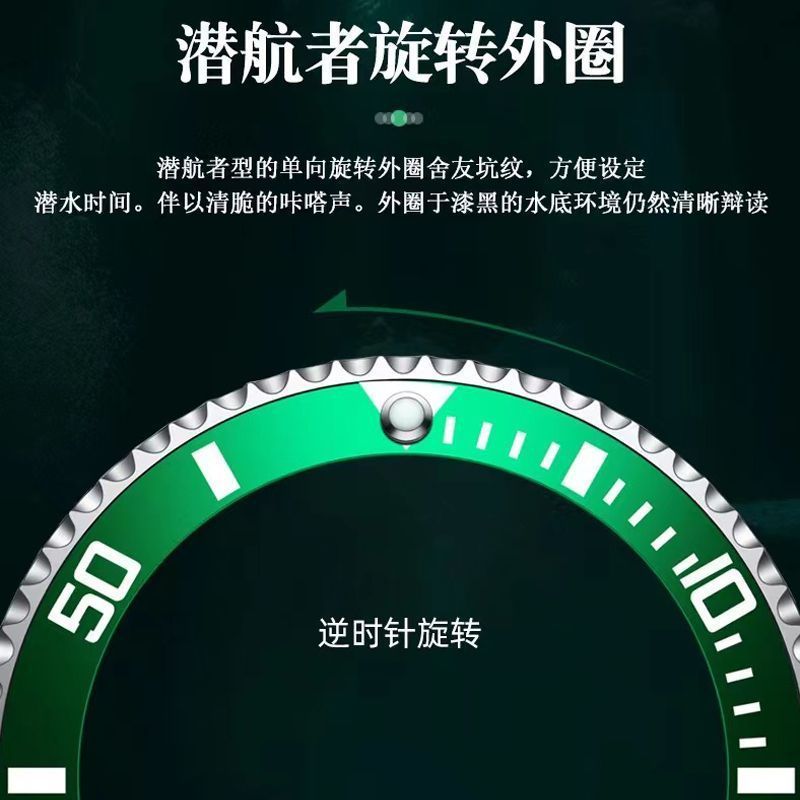 艾莉菲達水鬼系列錶盤外圈可轉動的石英時尚商務手錶腕錶三色可選