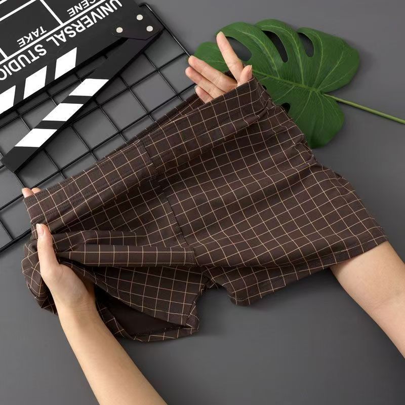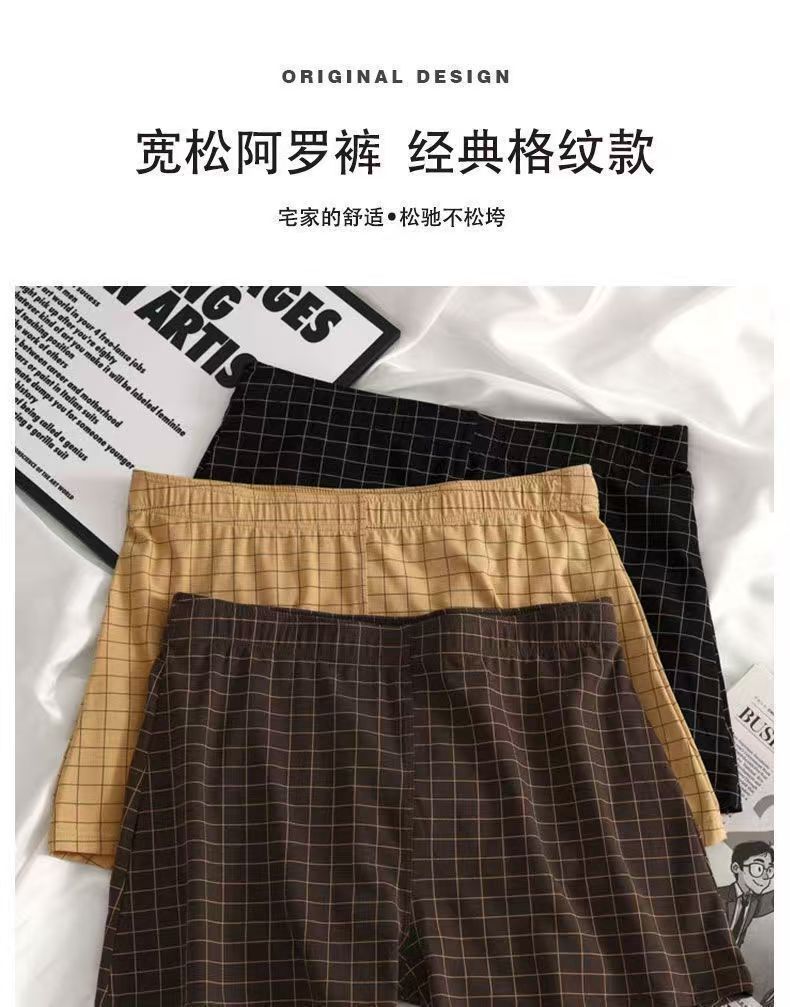 男士內褲新款舒適寬鬆格子阿羅褲中腰大碼男生四角透氣親膚短褲衩