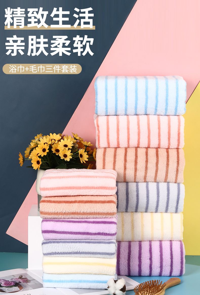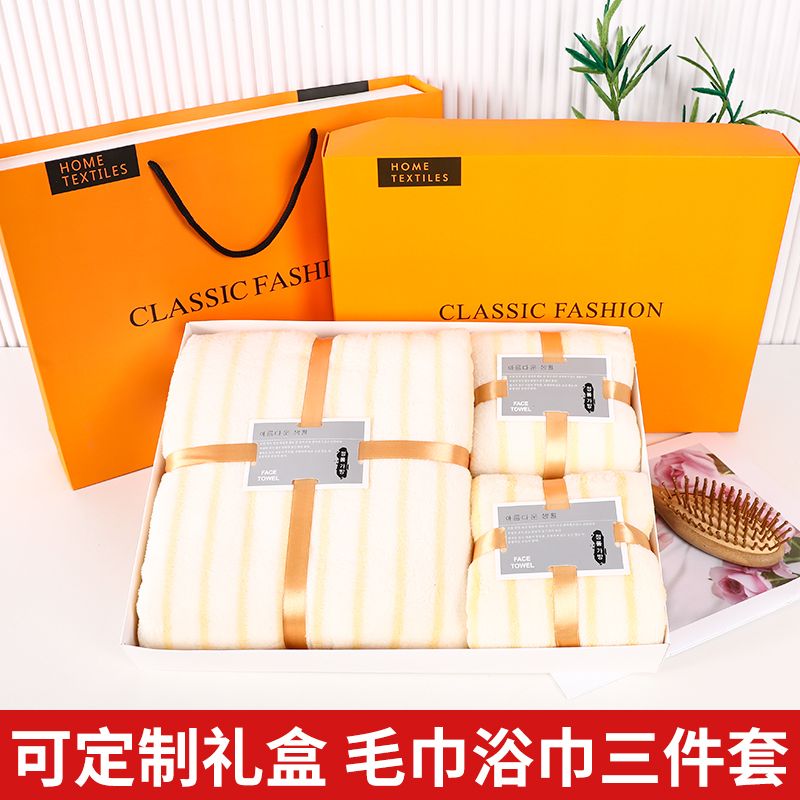 高密珊瑚絨毛巾浴巾套裝禮盒三件套加厚柔軟吸水