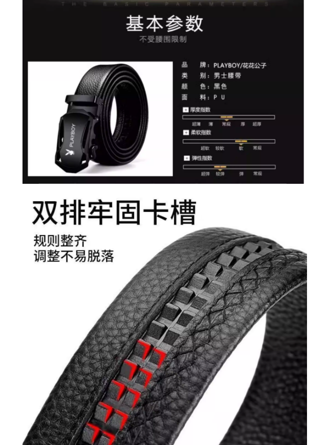 花花公子皮帶男士皮帶身自動扣中年人男士褲帶高檔休閒男腰帶皮帶