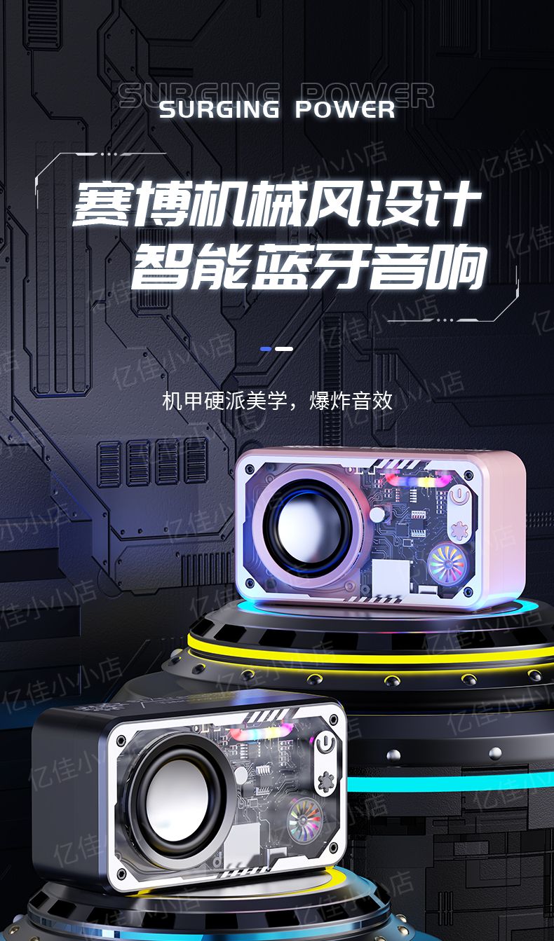 2024 賽博機甲低音炮高音質透明機甲戶外大功率重低音無線藍牙音響