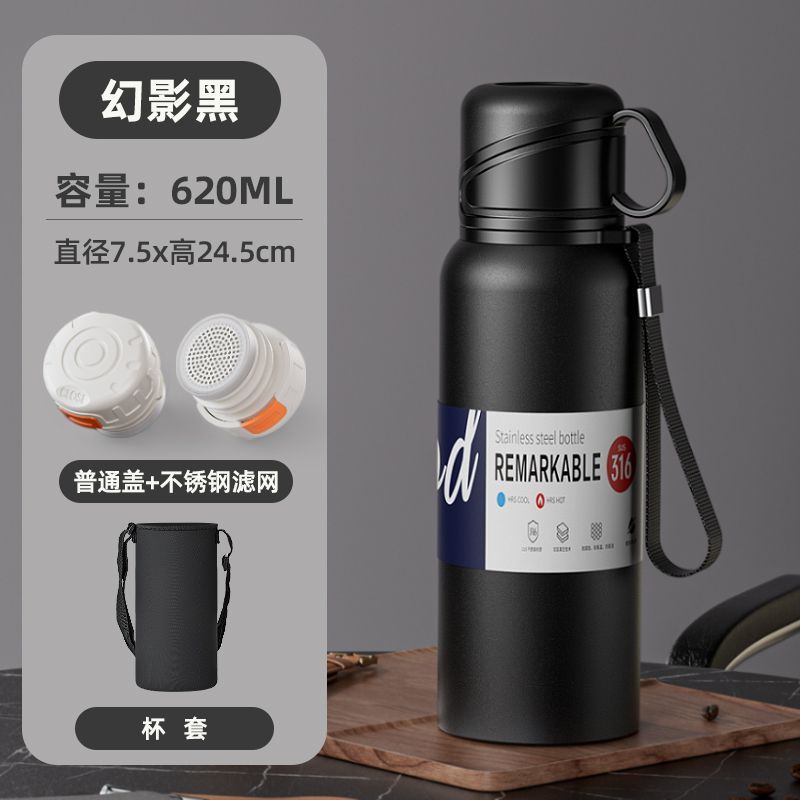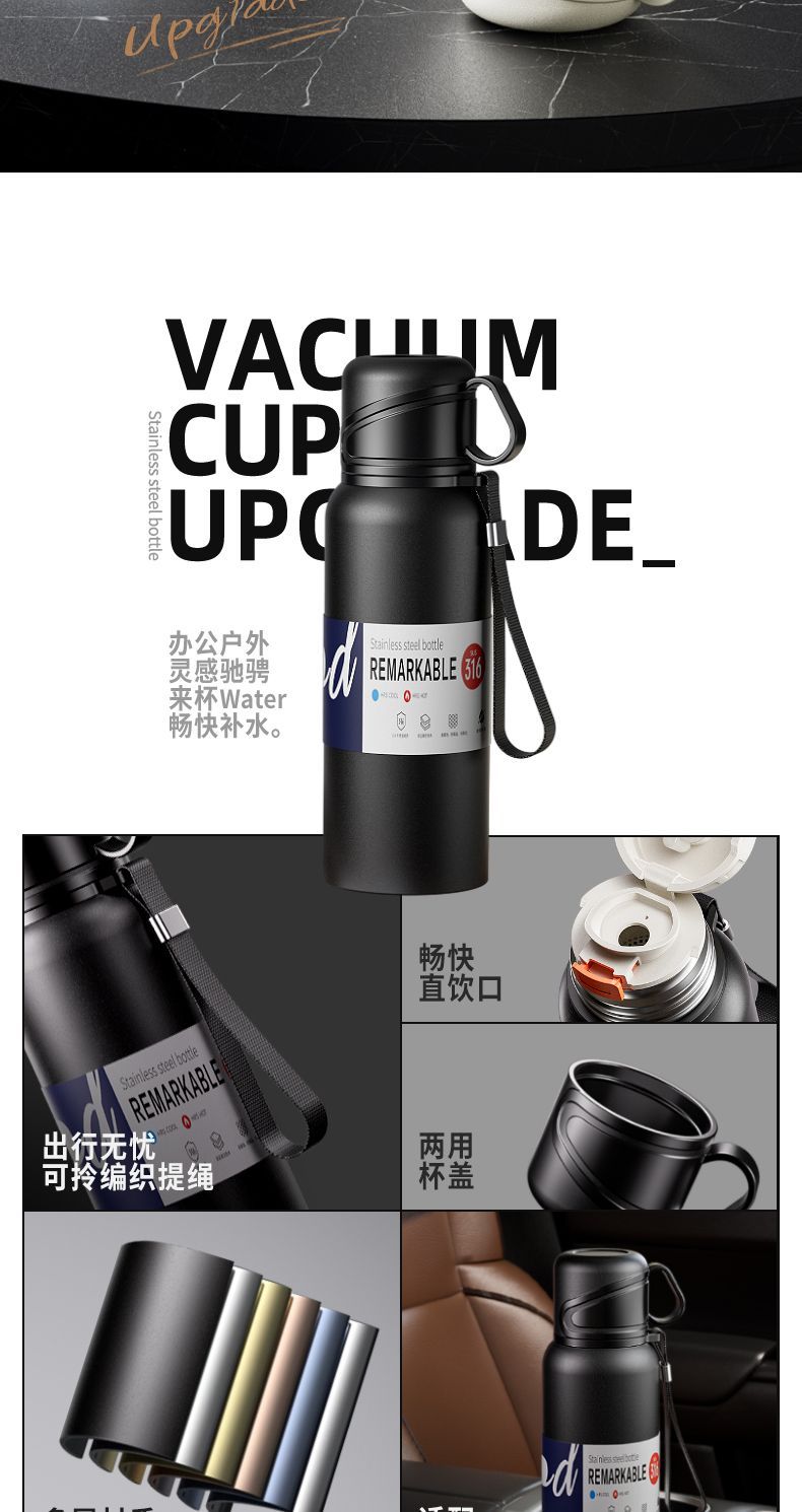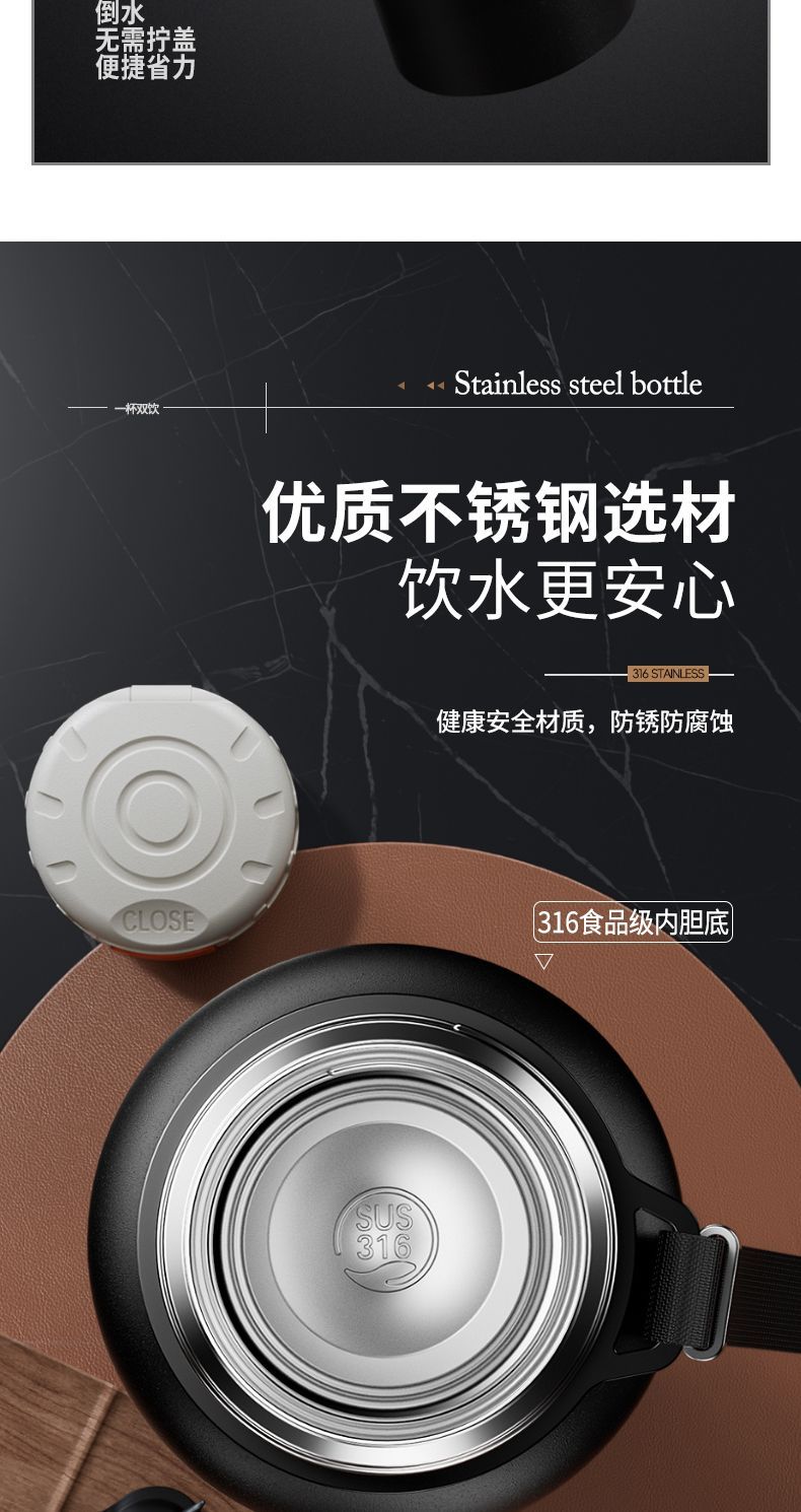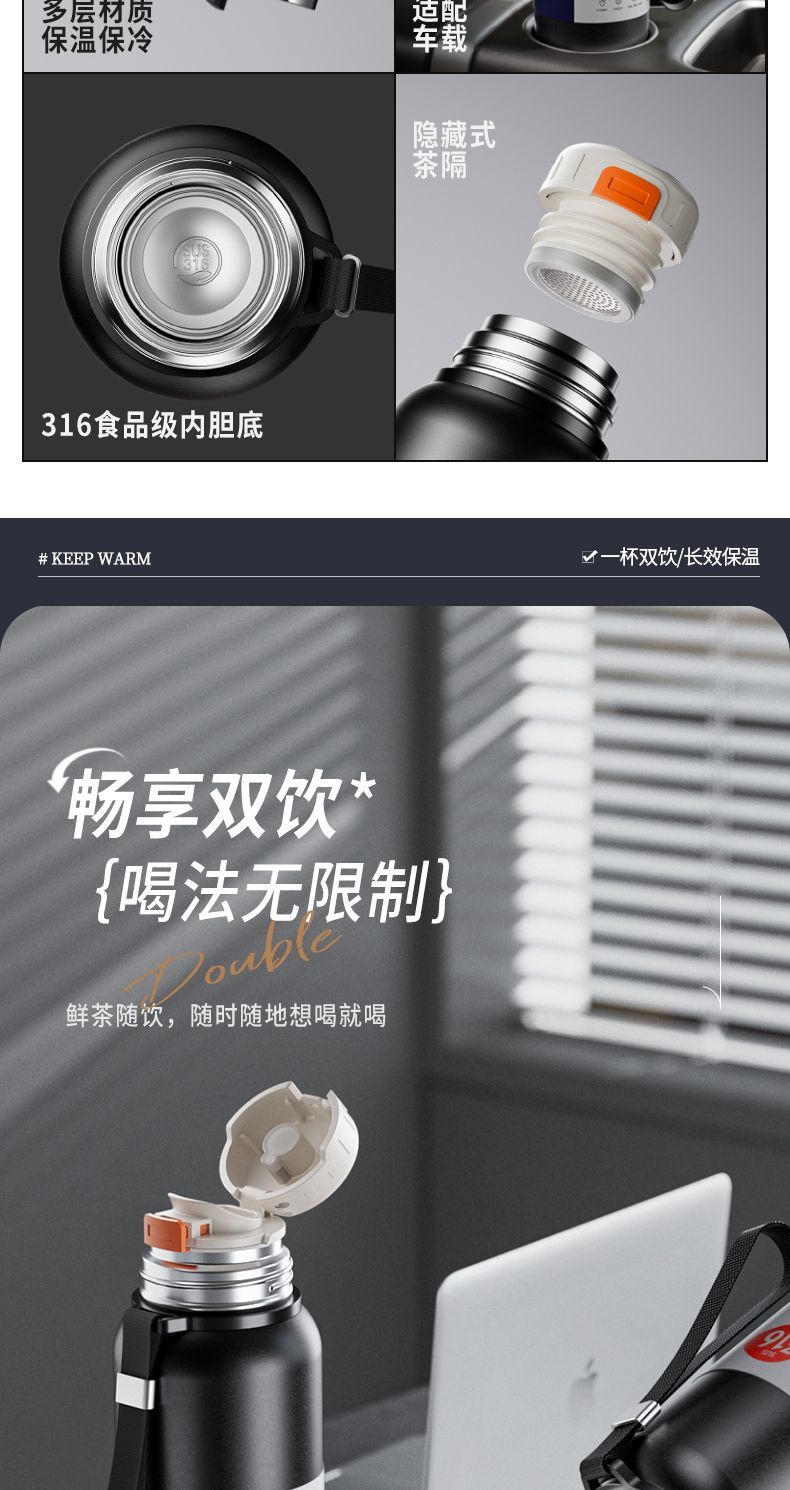 新款 316 不鏽鋼保溫水杯大容量男女便攜茶杯車載戶外茶水分離水壺