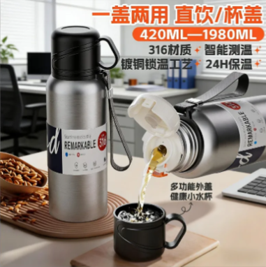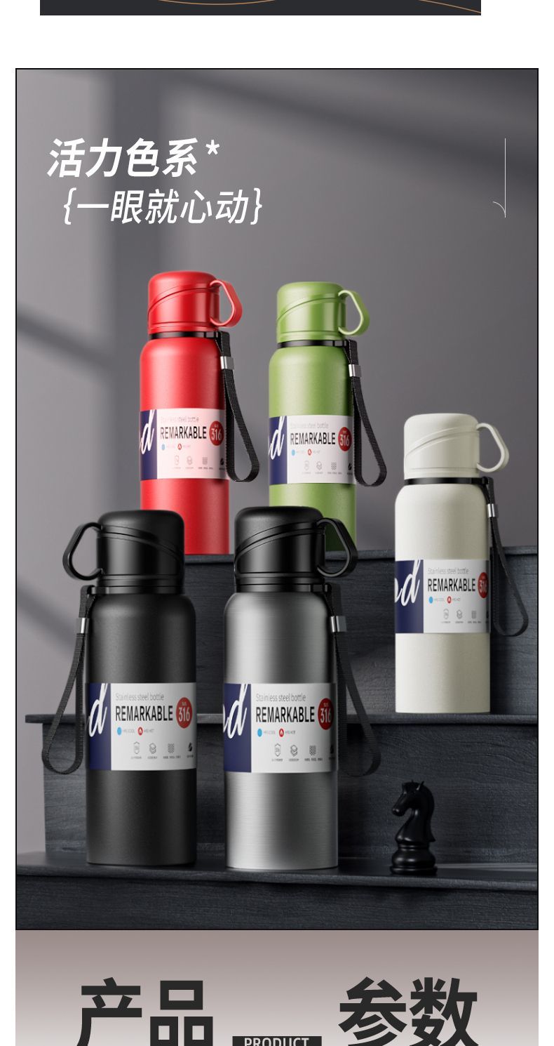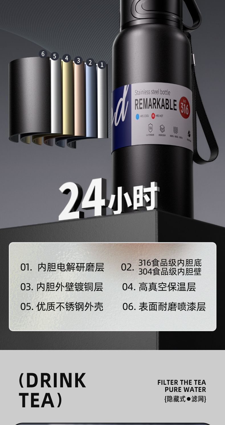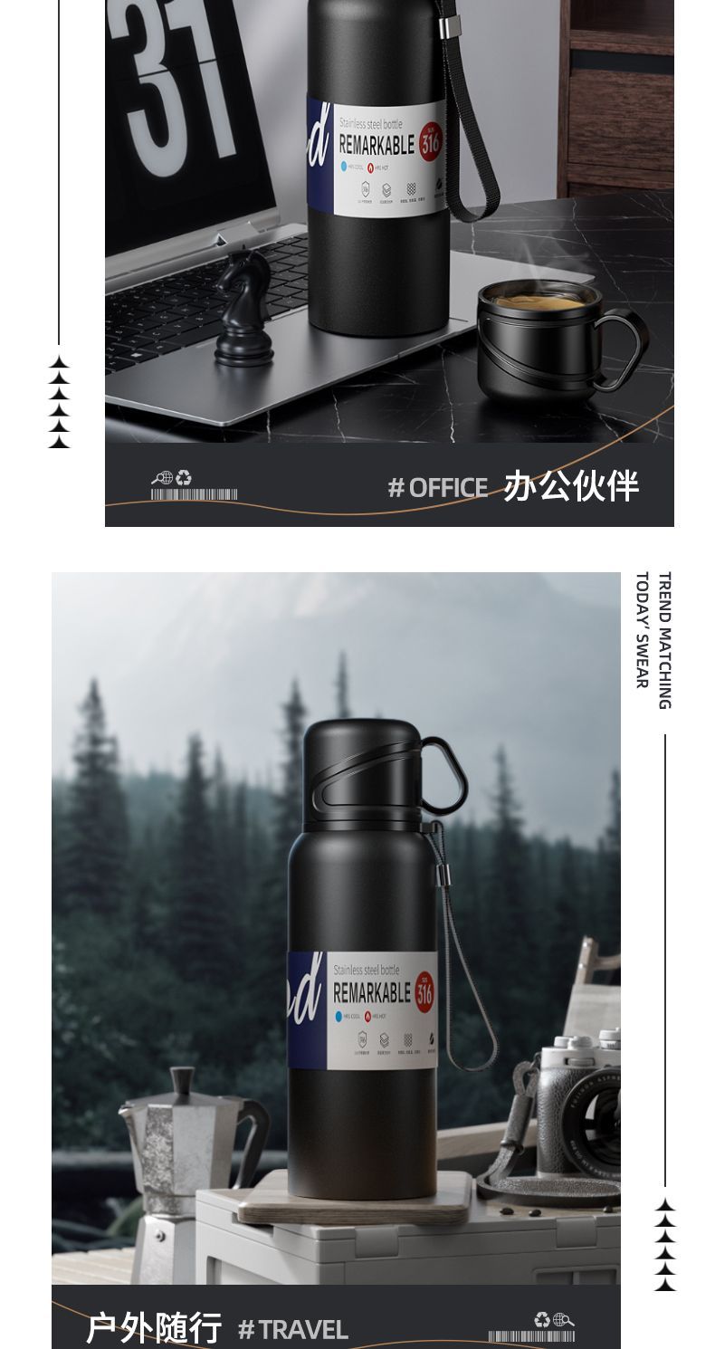 新款 316 不鏽鋼保溫水杯大容量男女便攜茶杯車載戶外茶水分離水壺