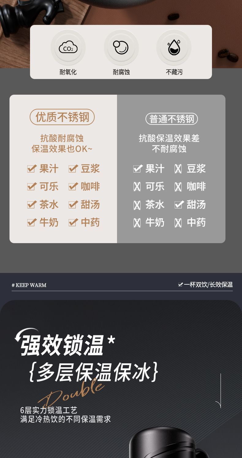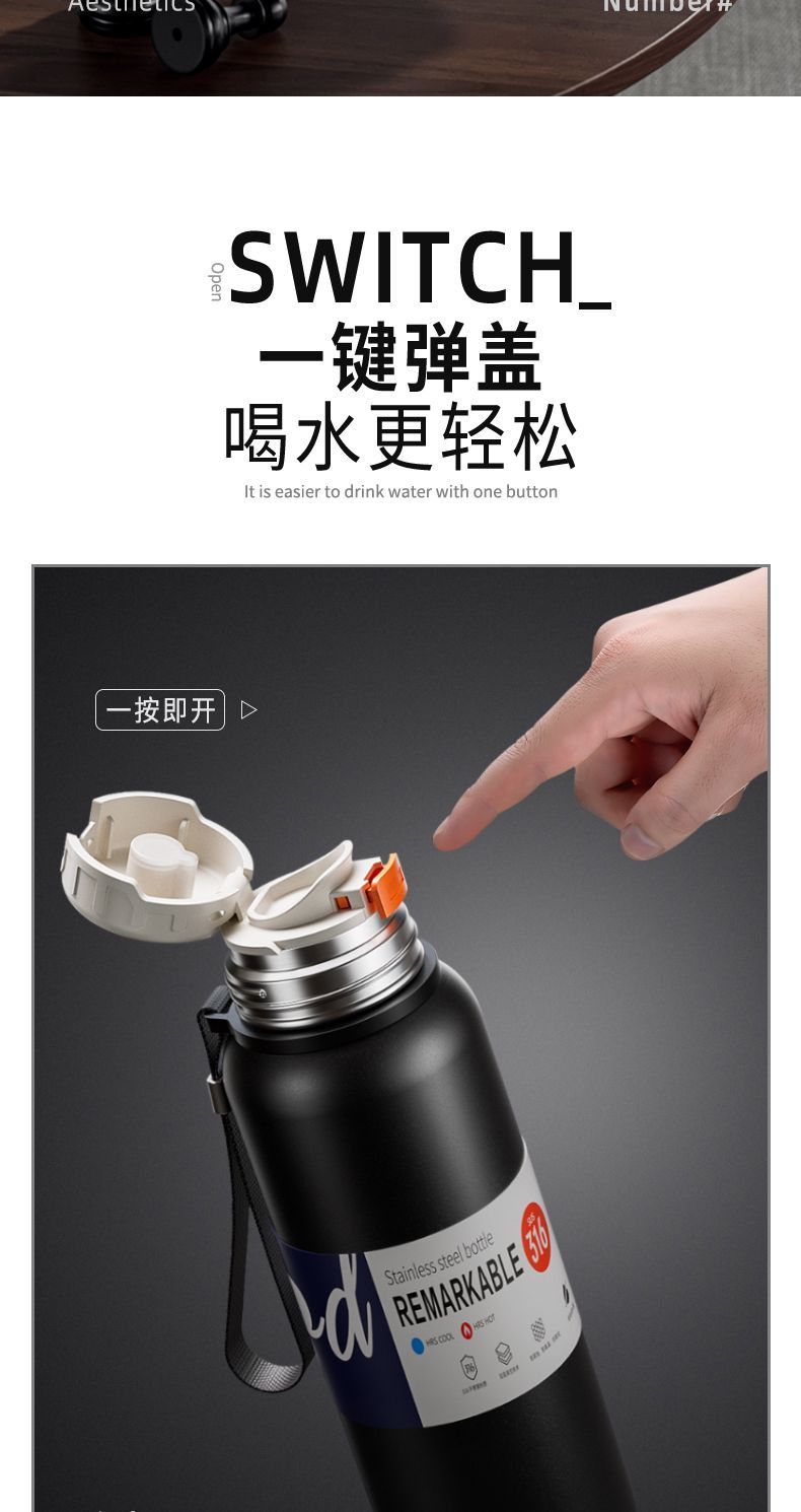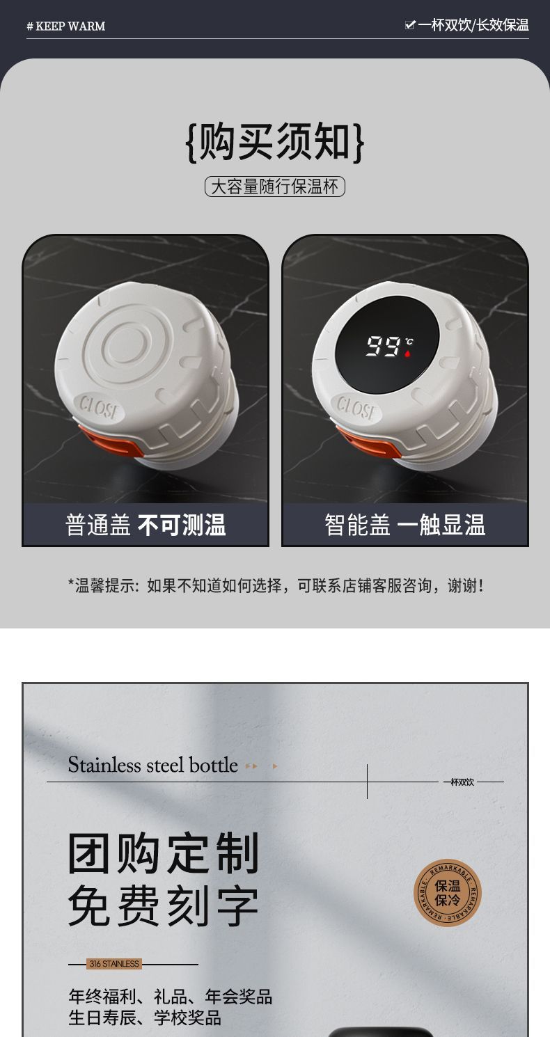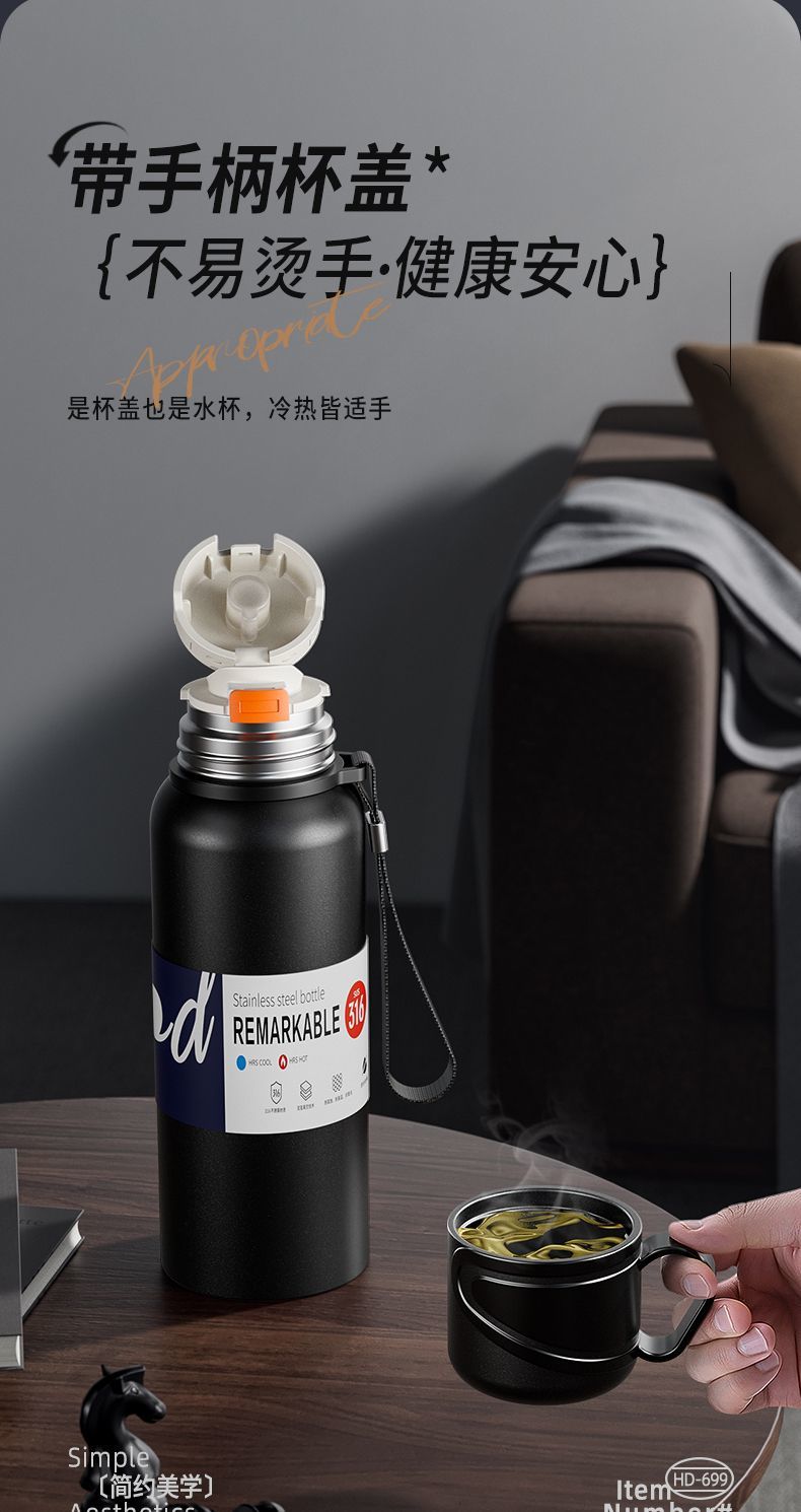 新款 316 不鏽鋼保溫水杯大容量男女便攜茶杯車載戶外茶水分離水壺