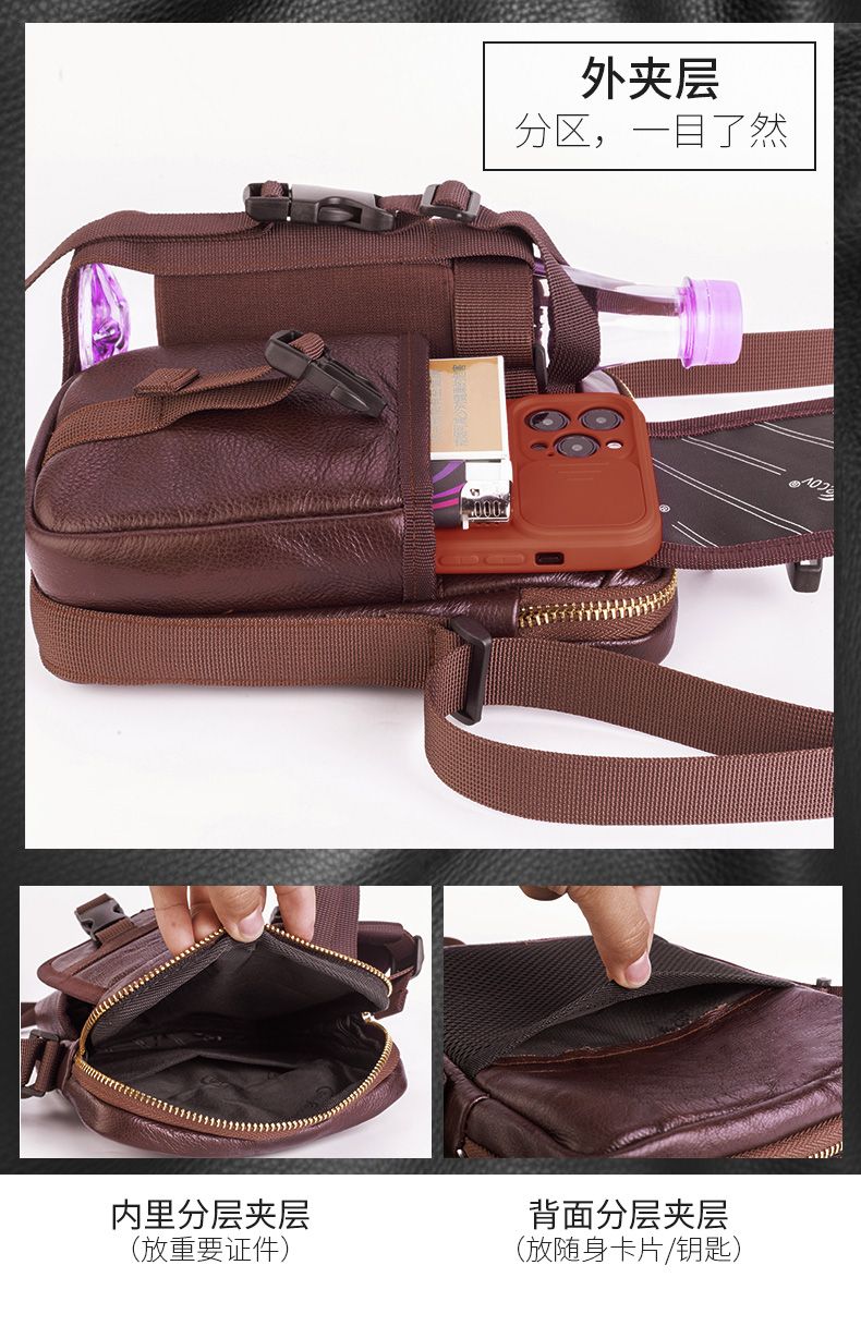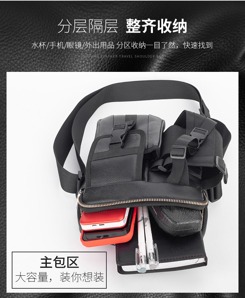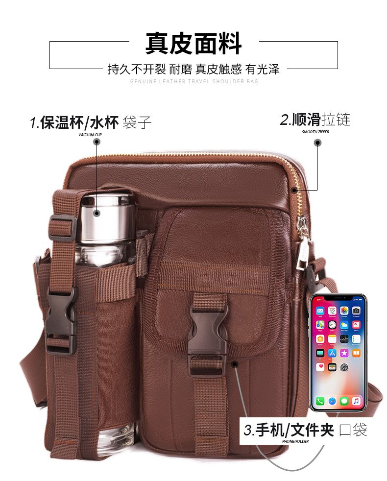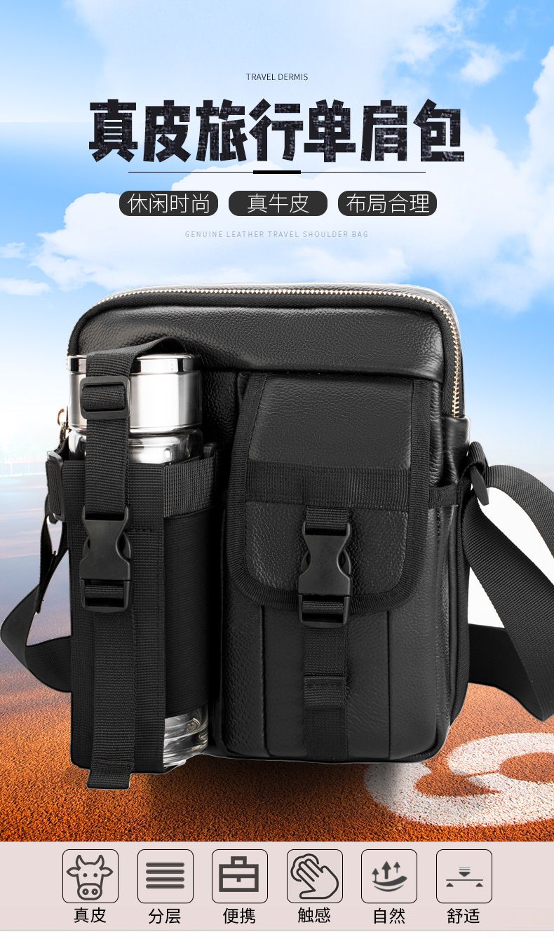 【牛皮面料】單肩斜挎包外出旅遊休閒背包