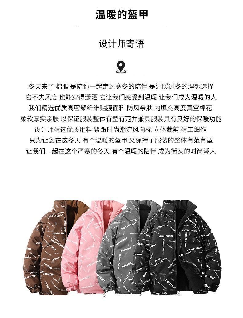 加厚保暖棉服情侶棉衣雙面穿潮牌男女款防風棉襖冬季百搭防水外套