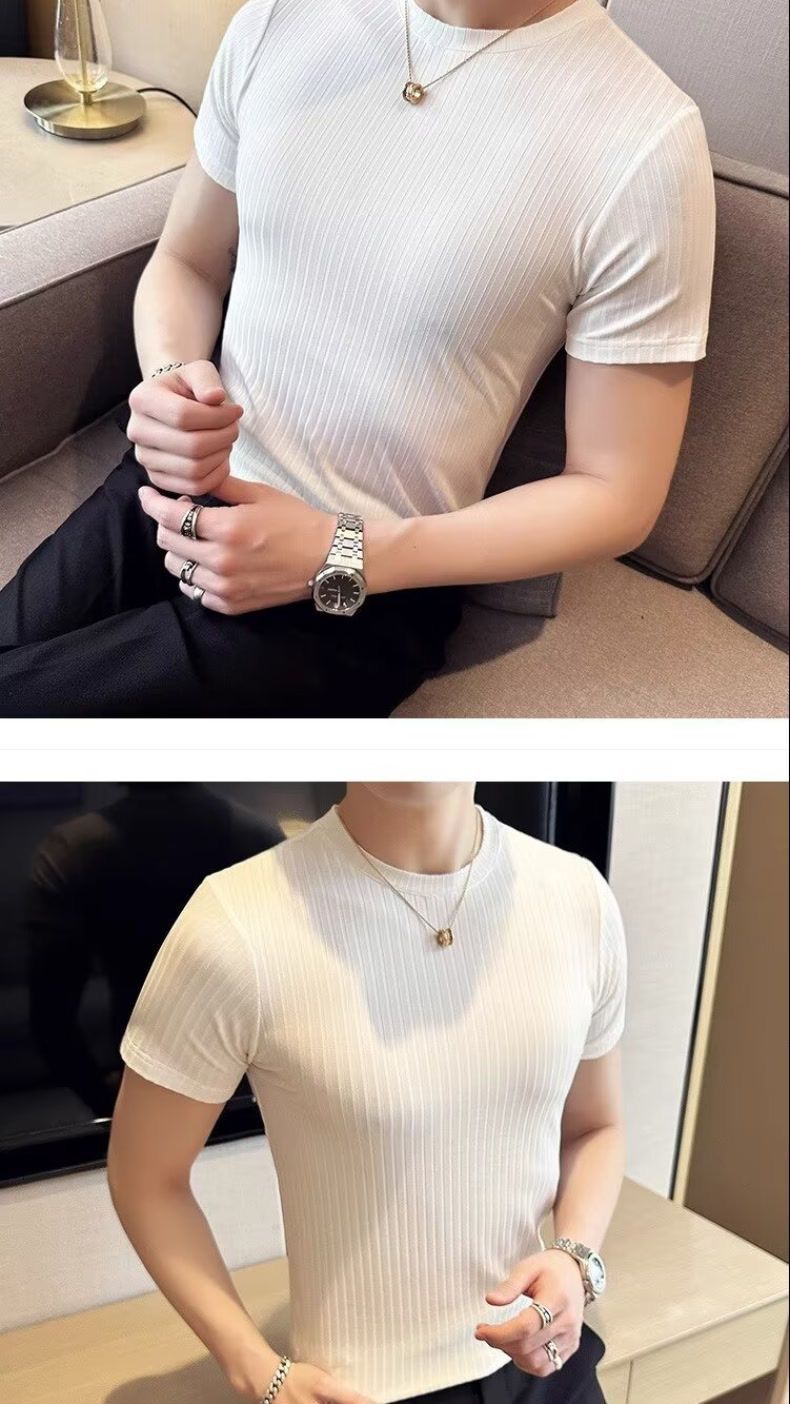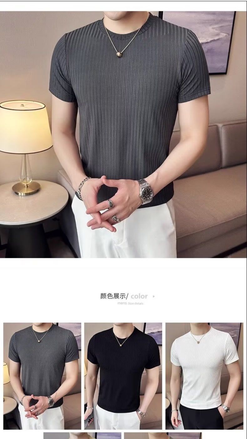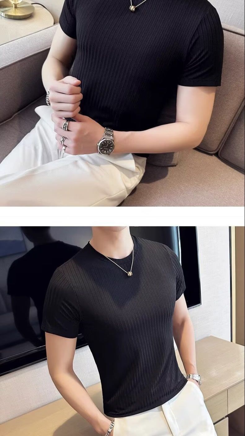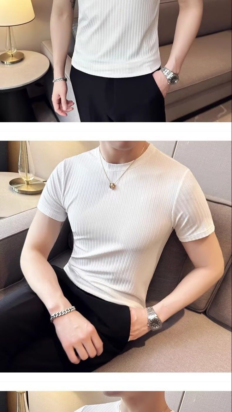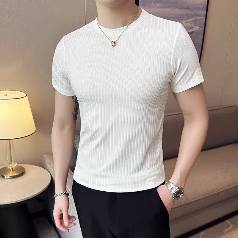 韓版 T 恤男白色夏季薄款冰絲彈力短袖新款透氣男士圓領寬鬆上衣男