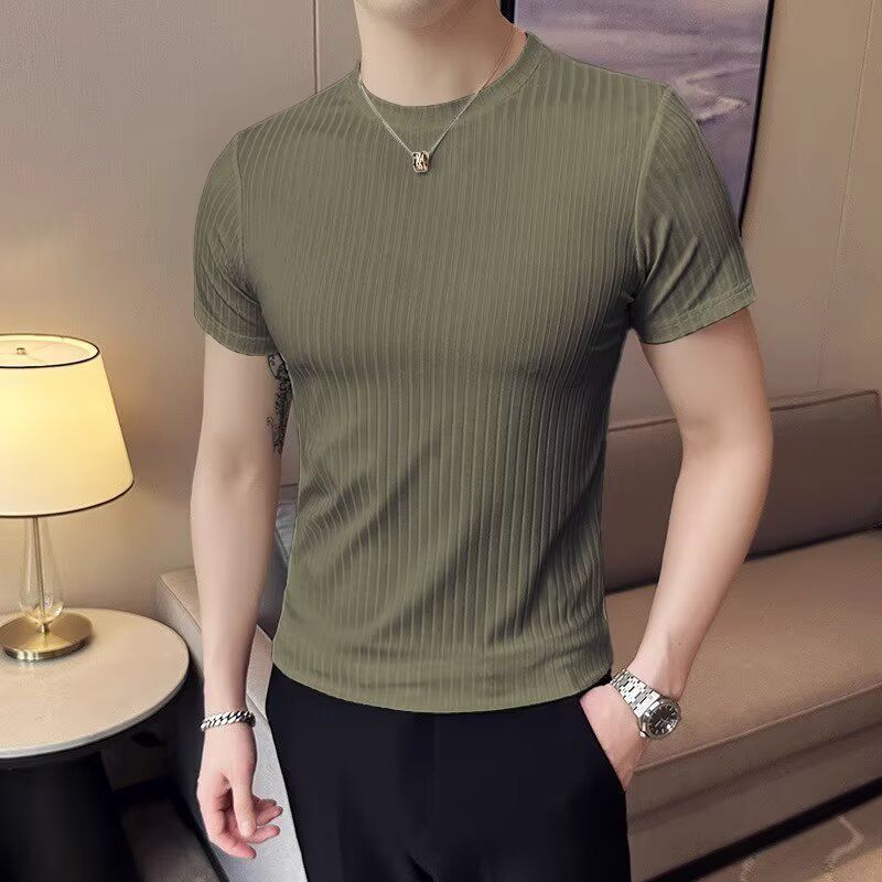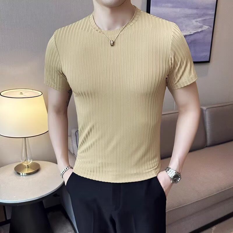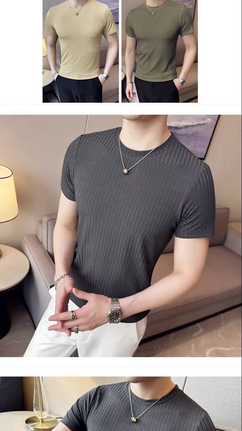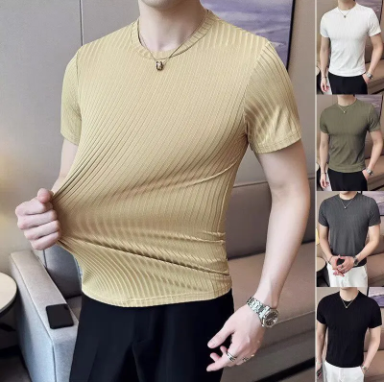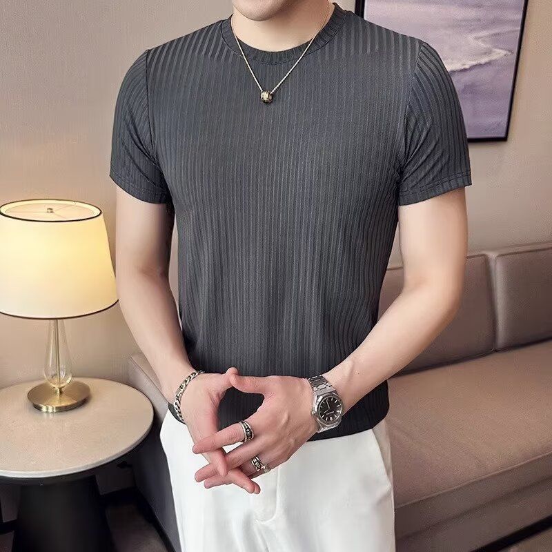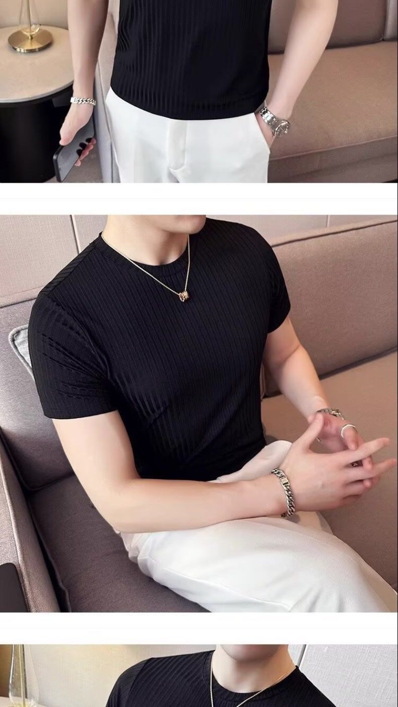 韓版 T 恤男白色夏季薄款冰絲彈力短袖新款透氣男士圓領寬鬆上衣男