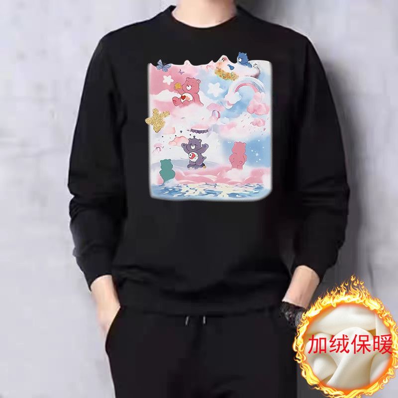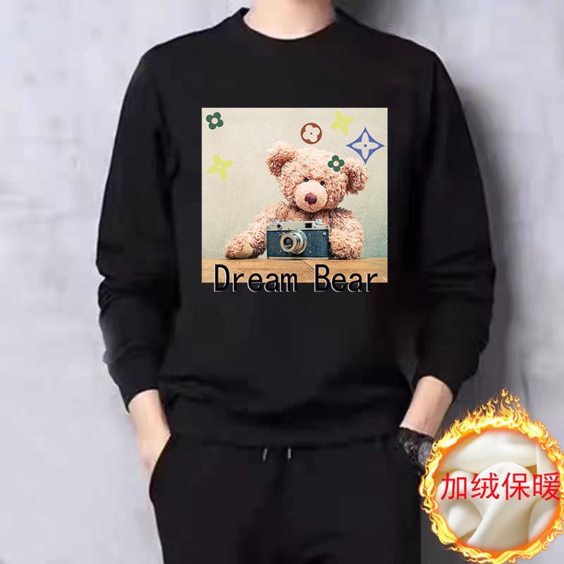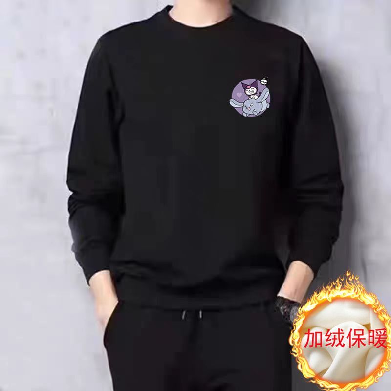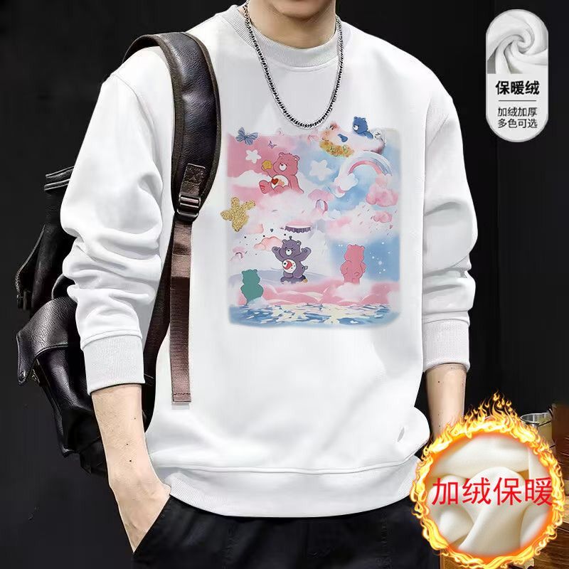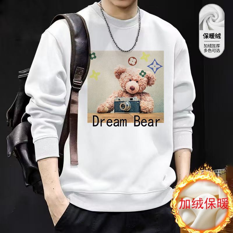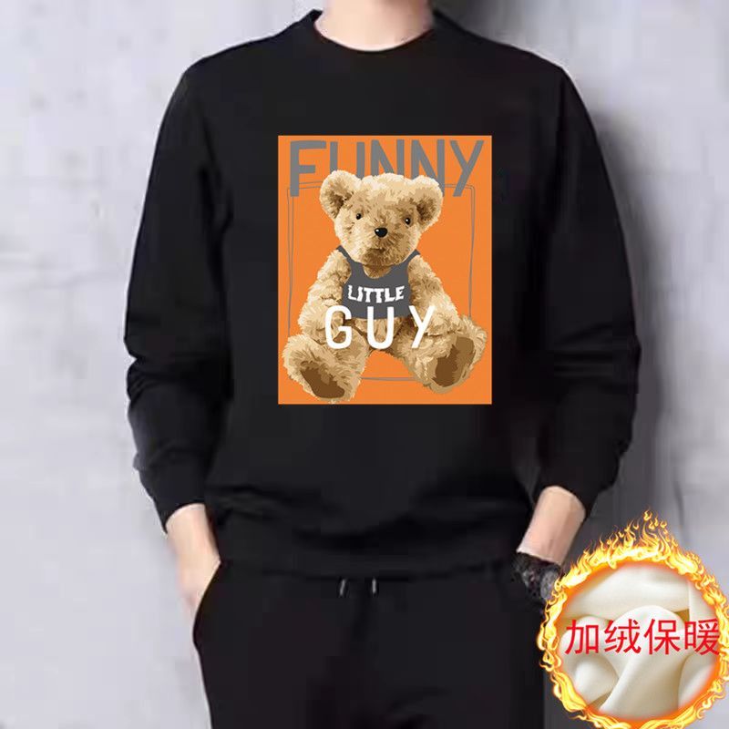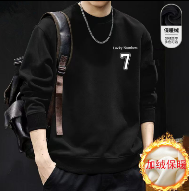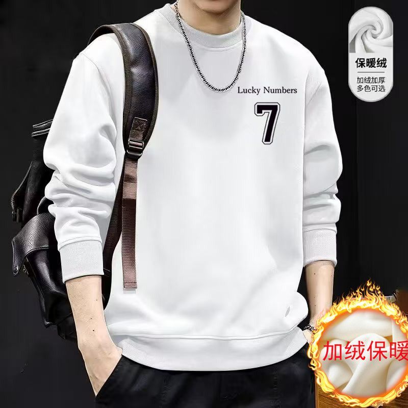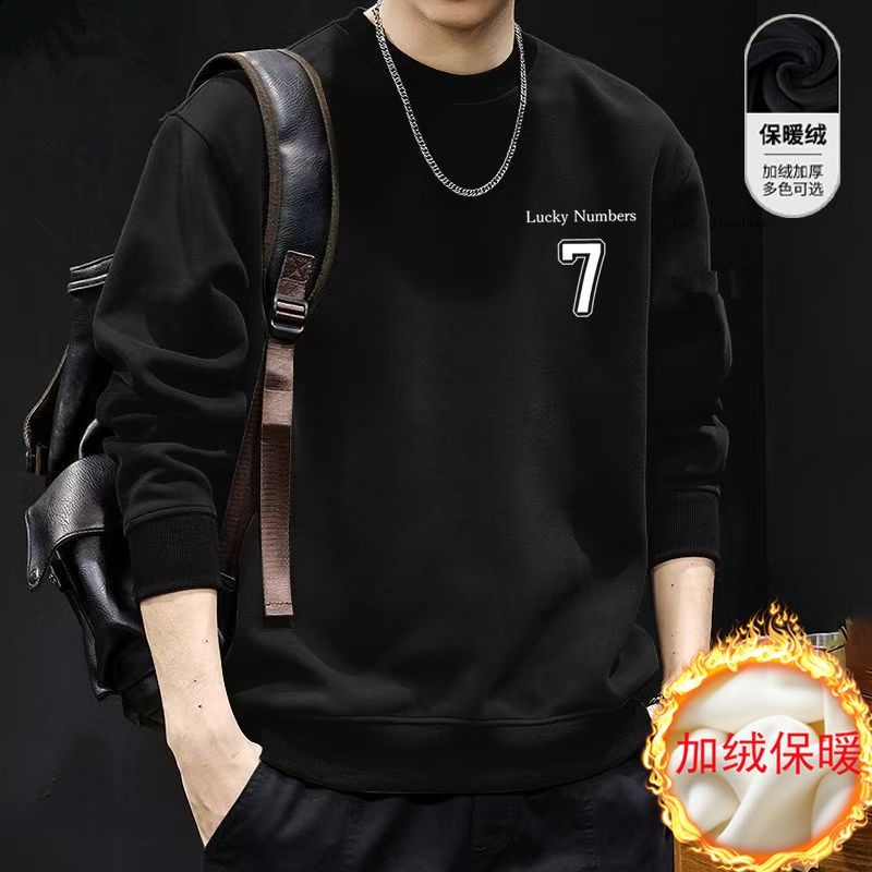 秋冬衛衣男士加絨長袖加厚新款 2025 潮流圓領印花打底休閒上衣