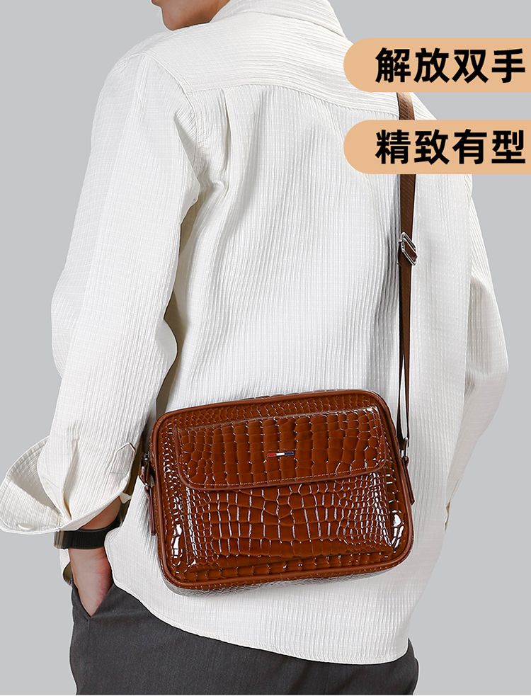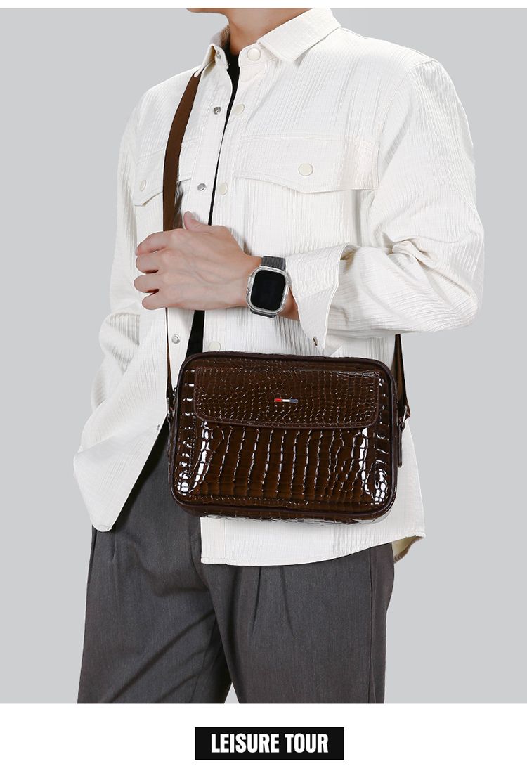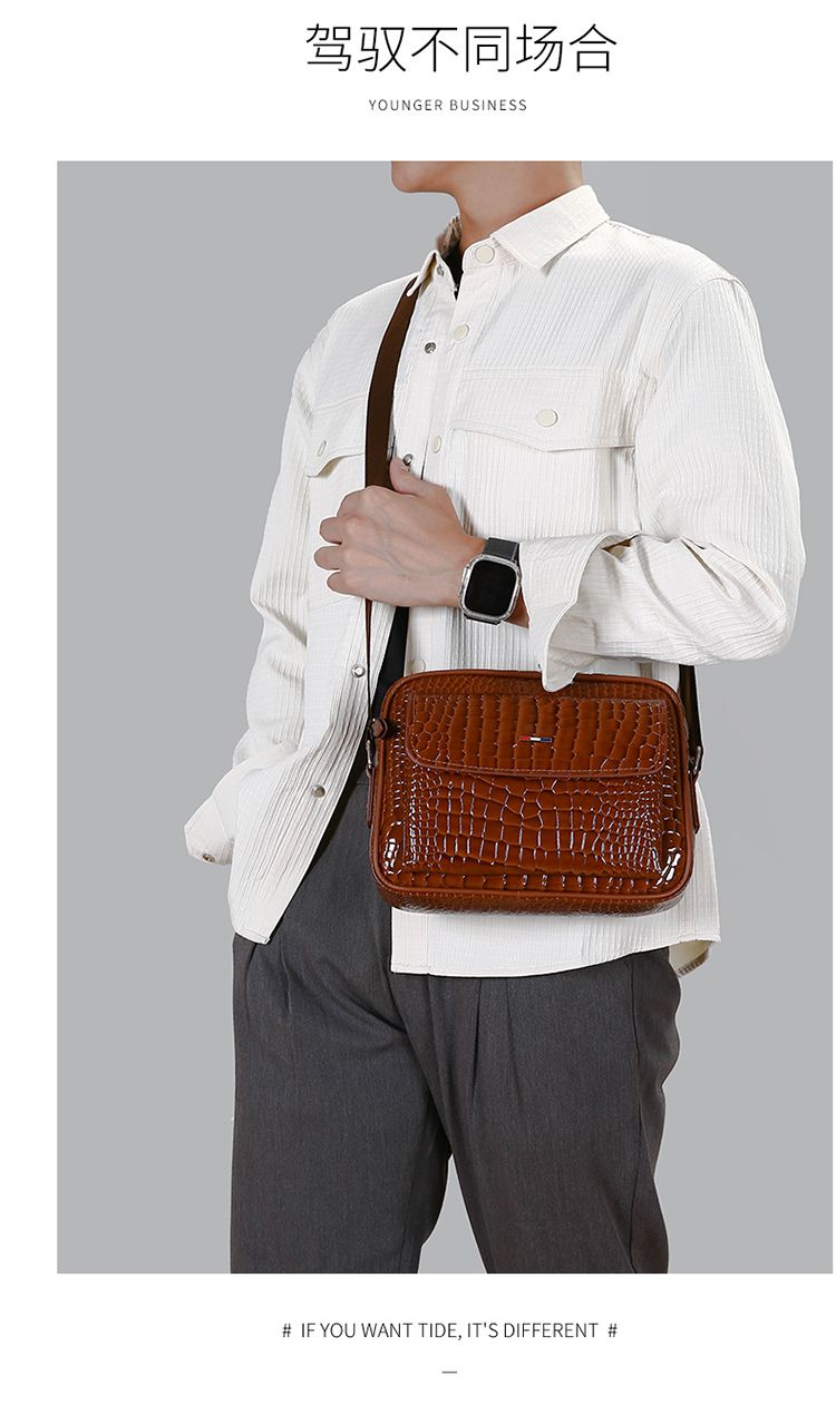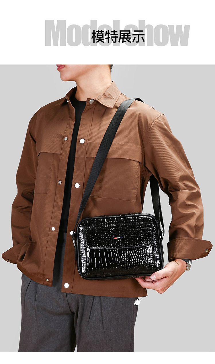 鱷魚紋男士單肩包大容量個性斜挎包