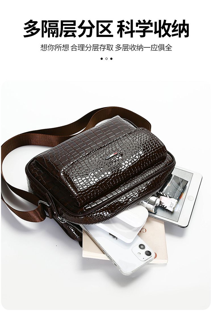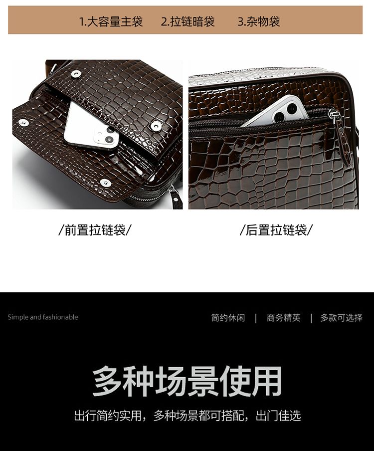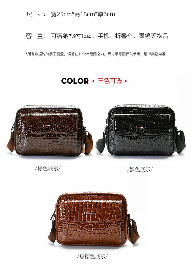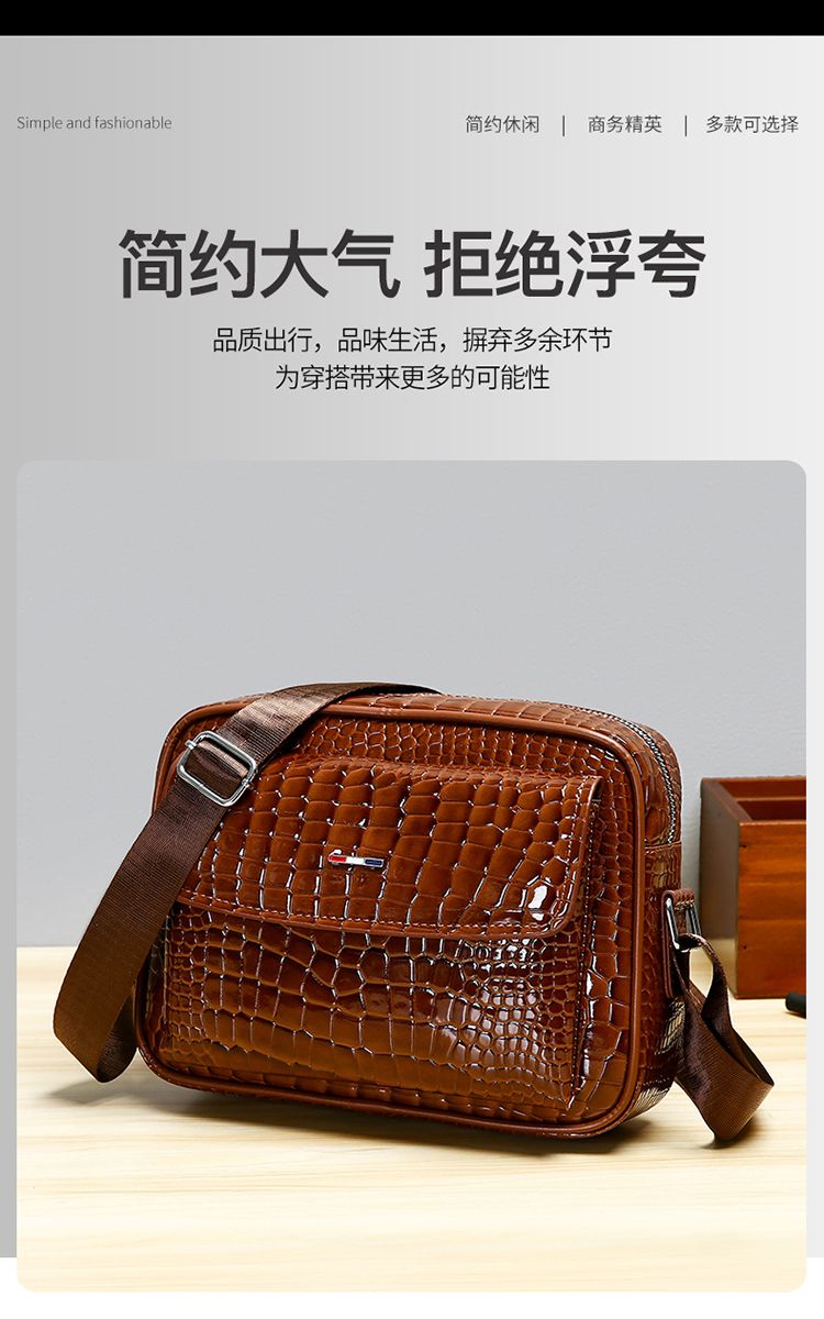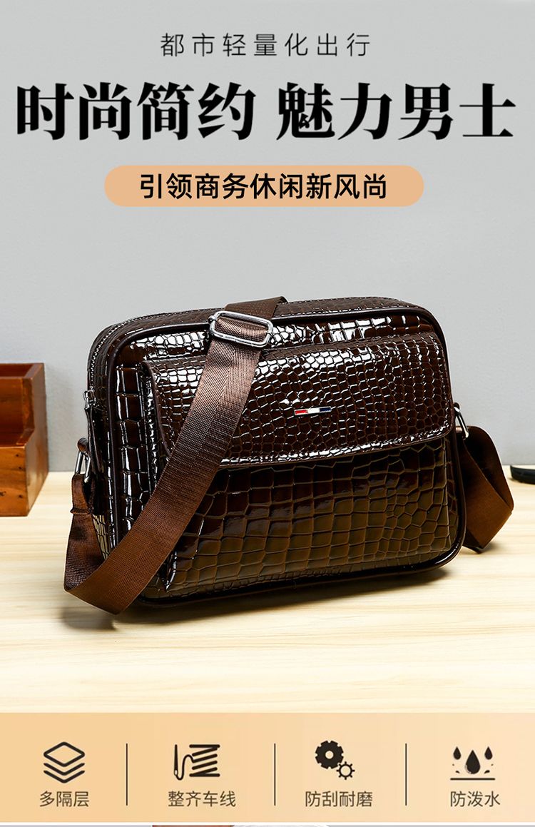 鱷魚紋男士單肩包大容量個性斜挎包