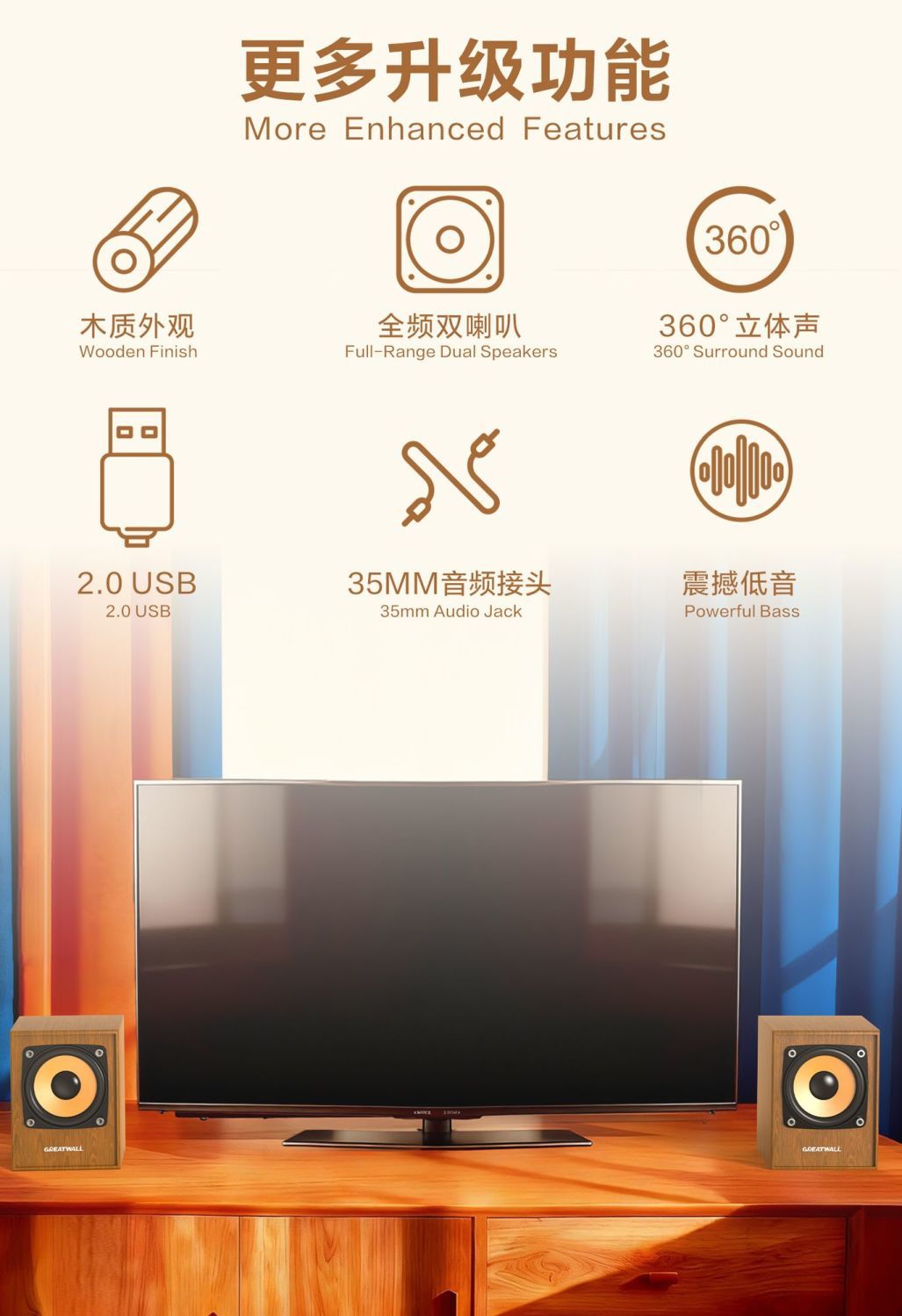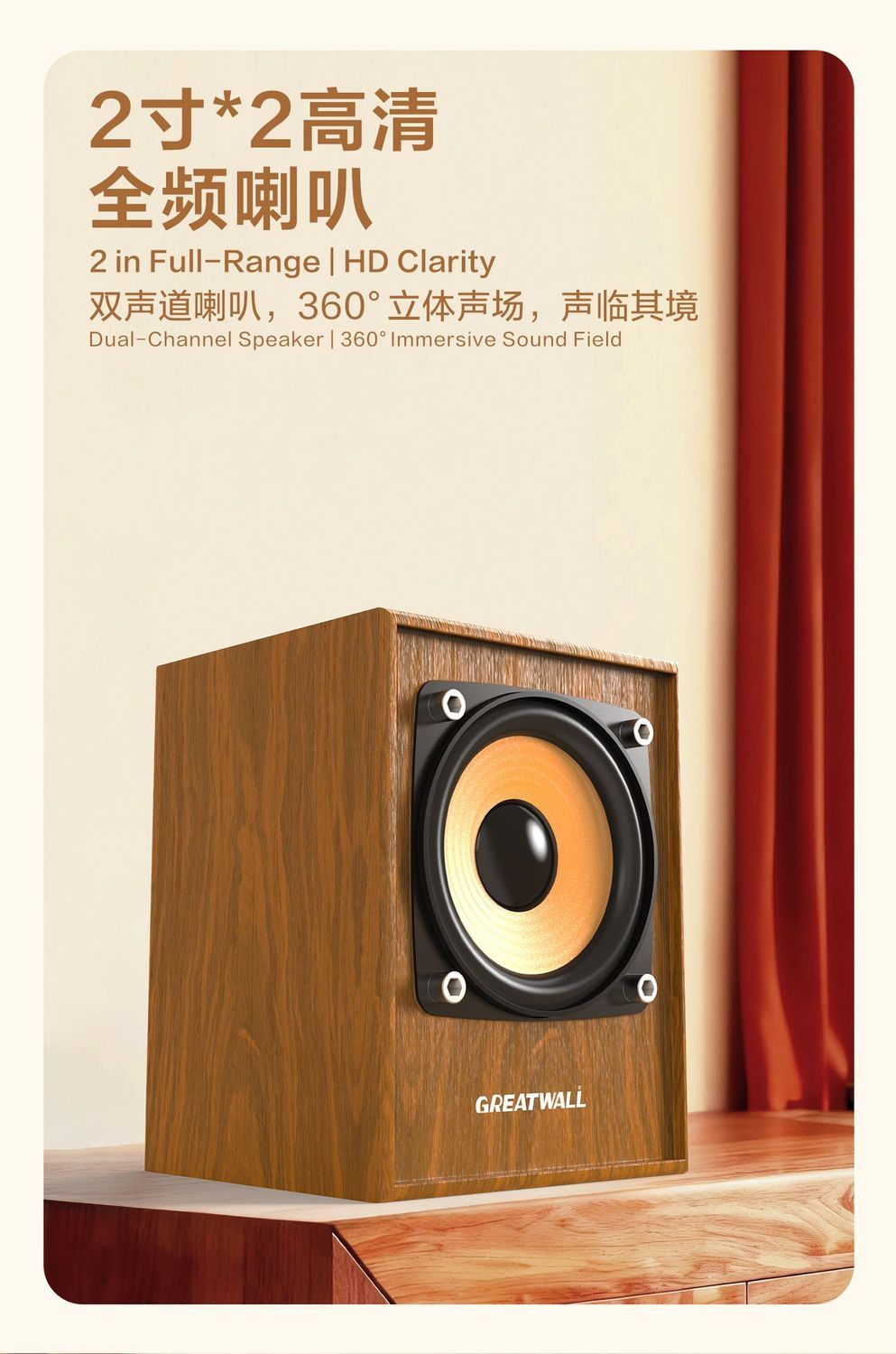 復古木質音箱 HIFI 大音量震撼 3d 重低音