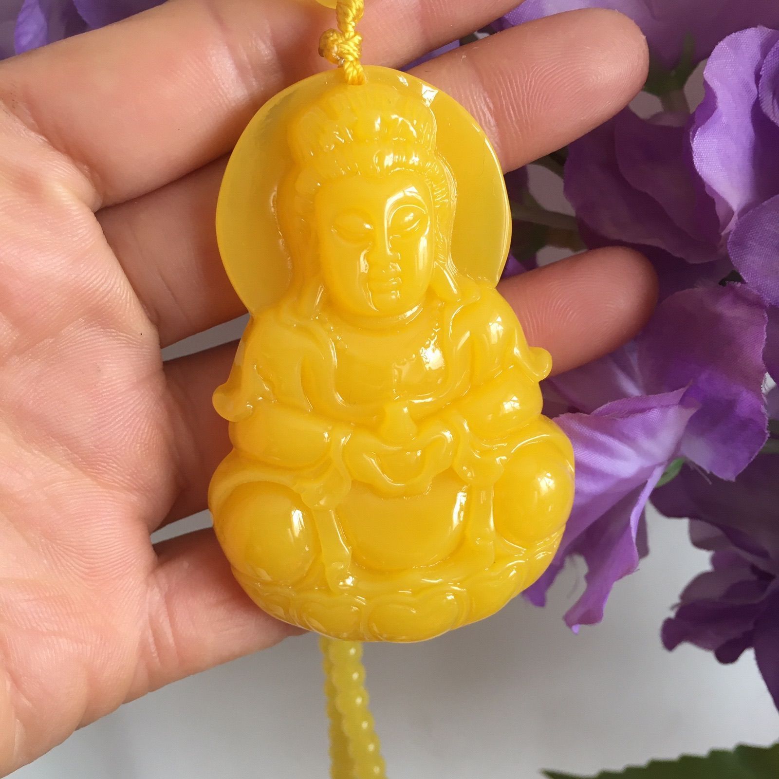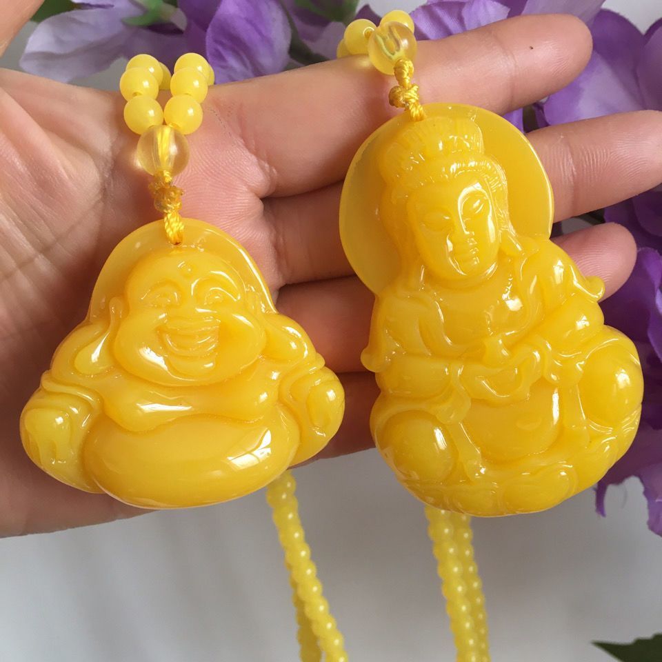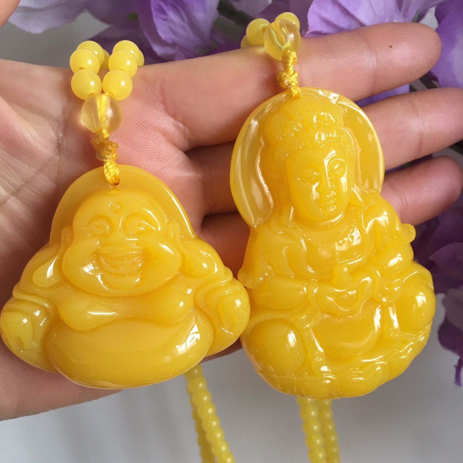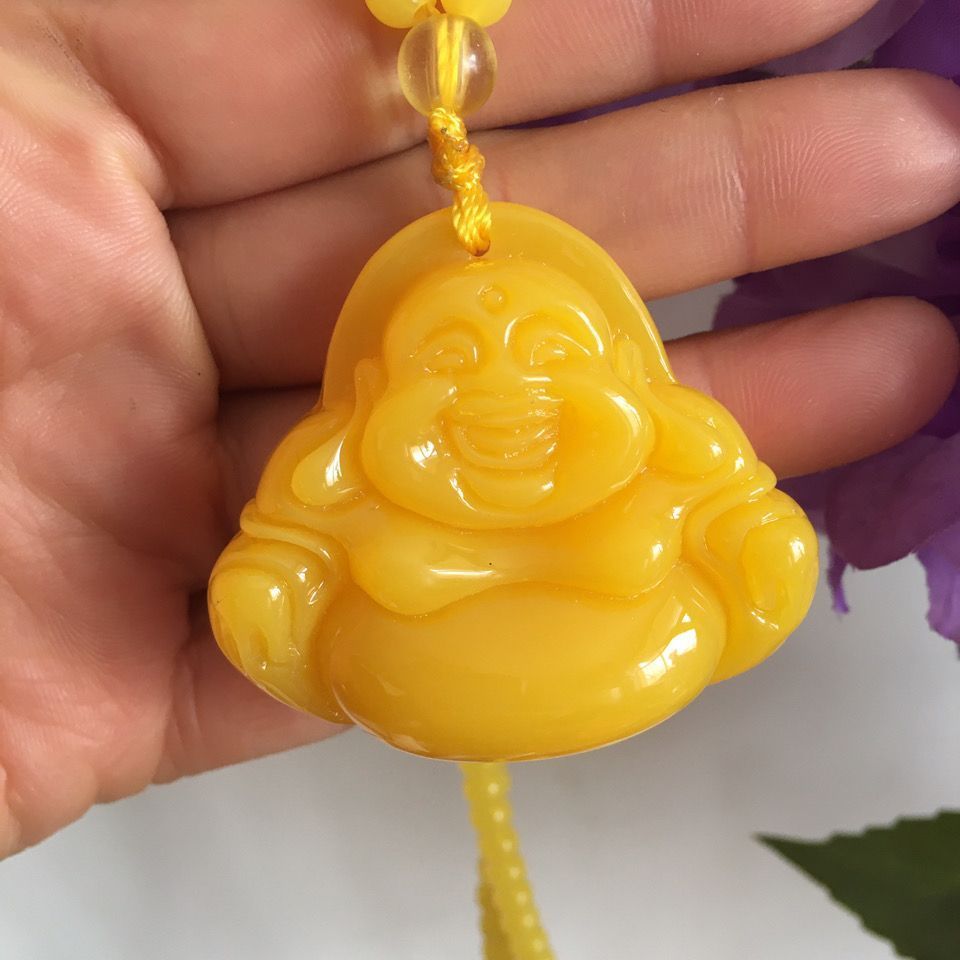 正品蜜蠟琥珀彌勒佛吊墜 笑佛長款毛衣鏈情侶款雞油黃項鏈掛墜