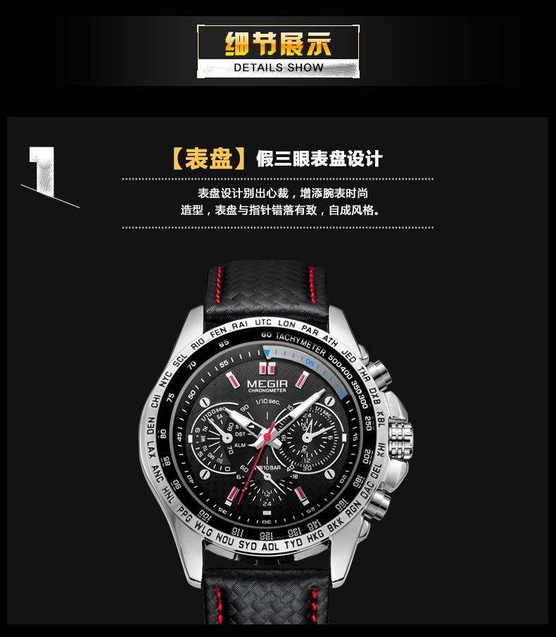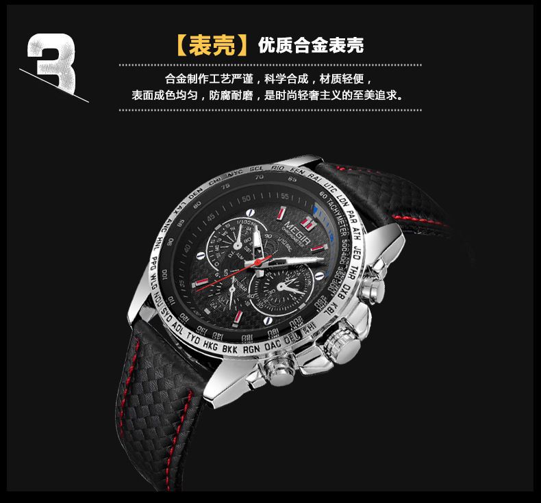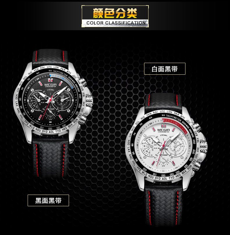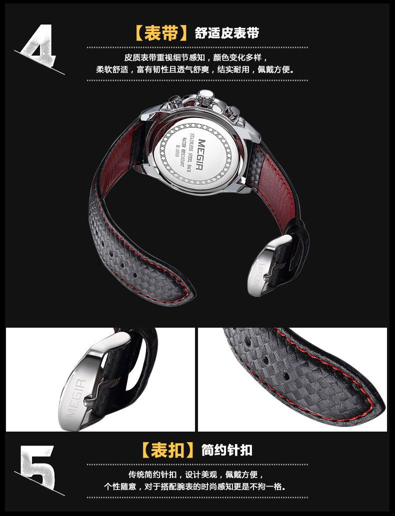 美格爾 MEGIR 男表運動熱銷手錶假三眼男士腕錶
