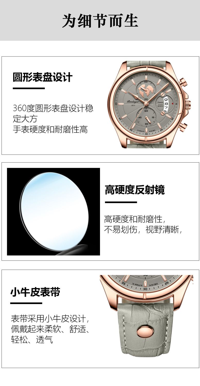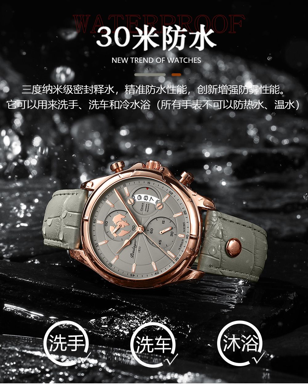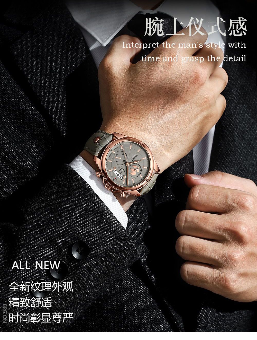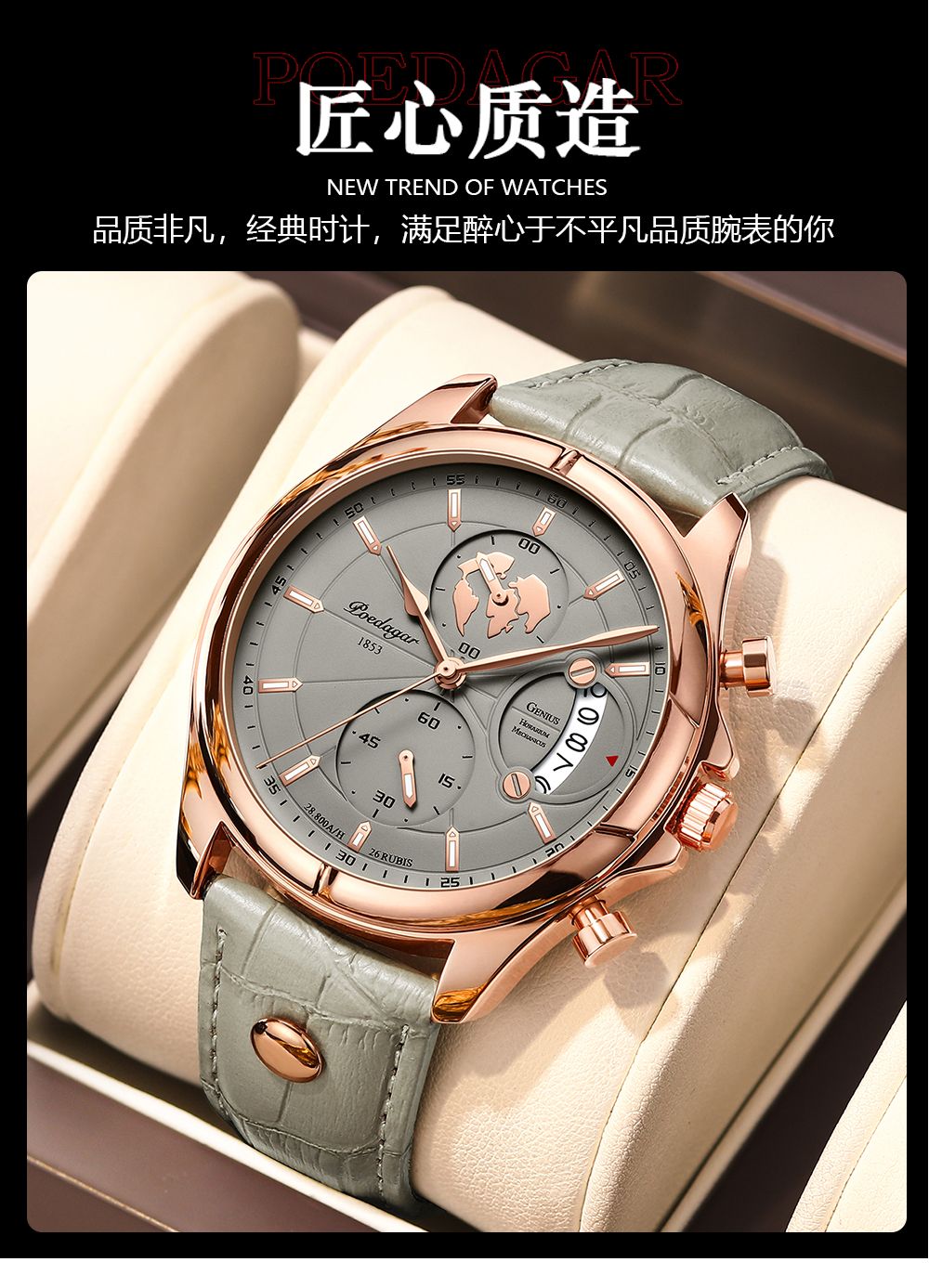 航海家新款男士手表防水日历潮流高級輕奢真皮腕錶