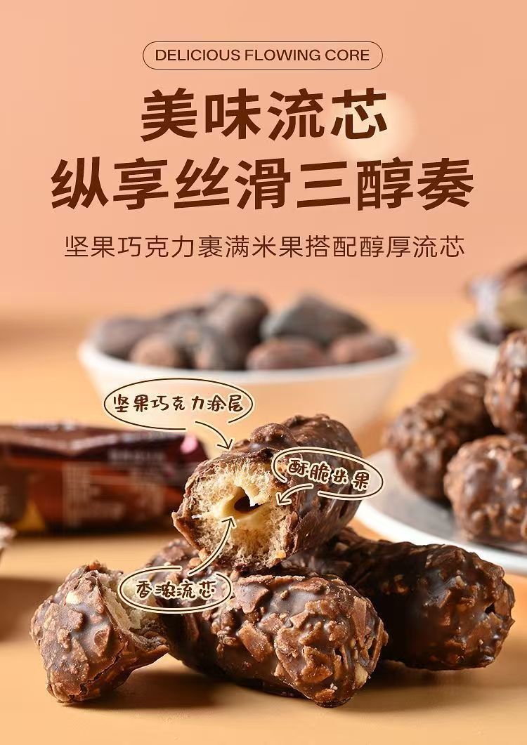堅果夾心巧克力棒花生威化休閒零食能量棒