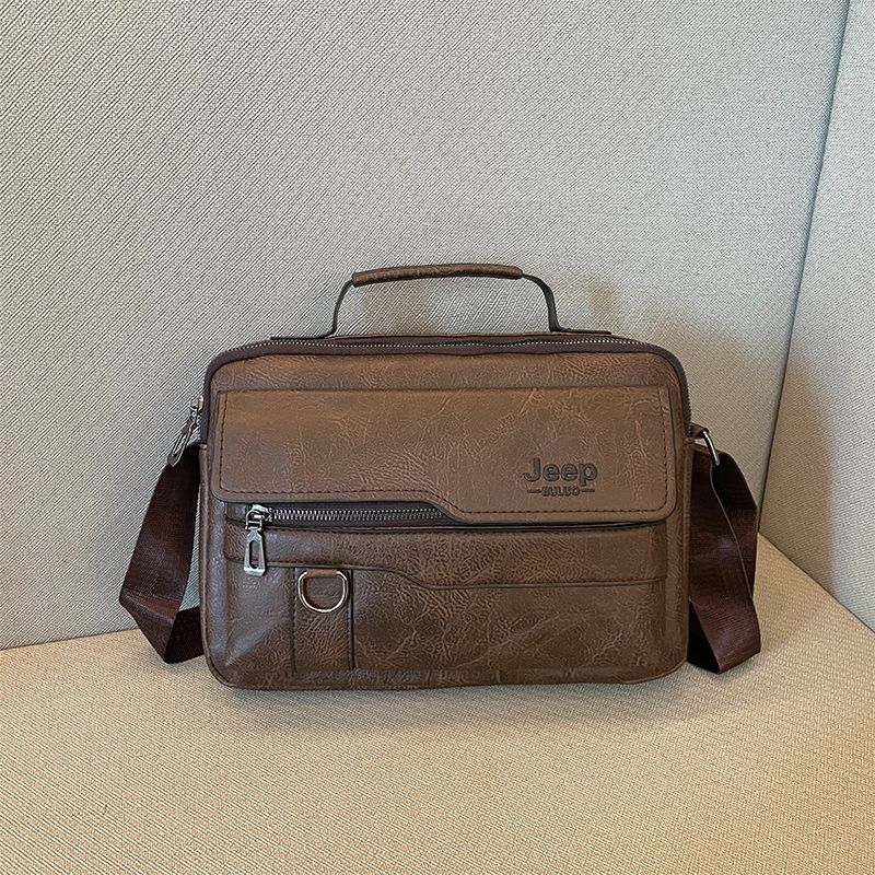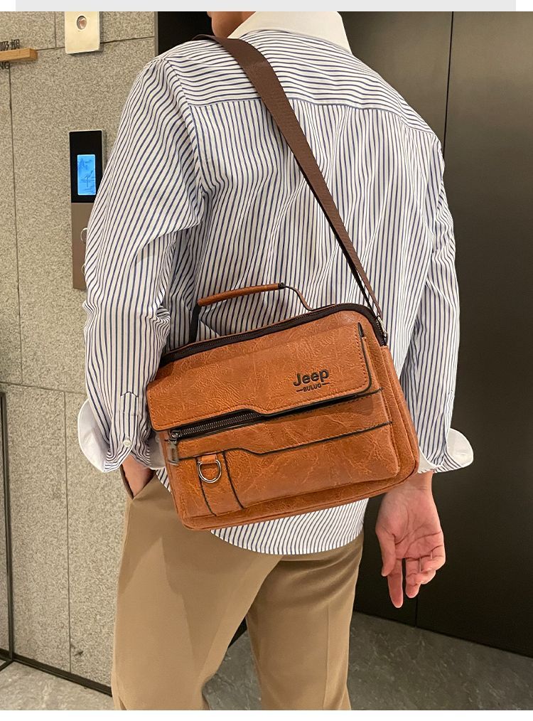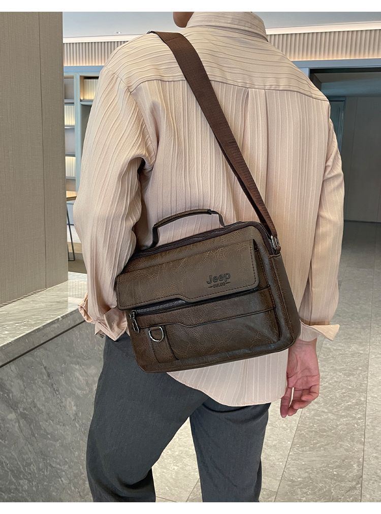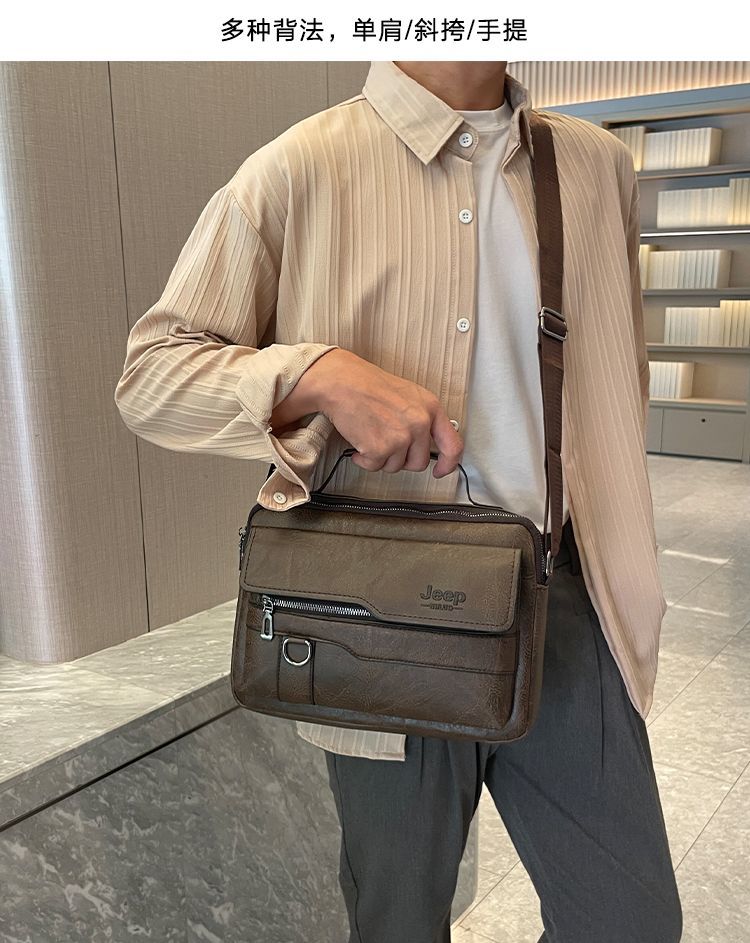 男士公文包橫款手提小方包上班通勤便攜男士單肩包復古背包