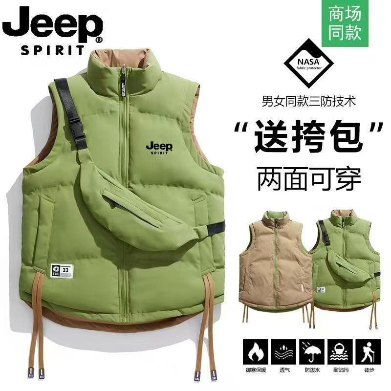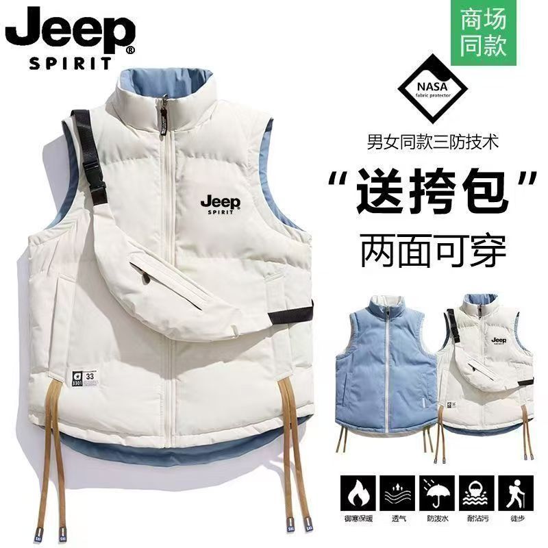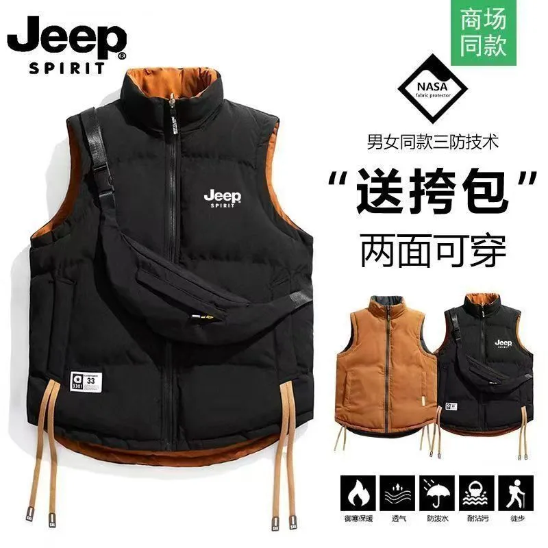 JEEP 吉普雙面穿大碼馬甲羽絨棉服男女情侶秋冬立領保暖加厚棉衣
