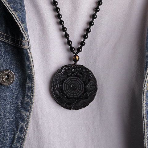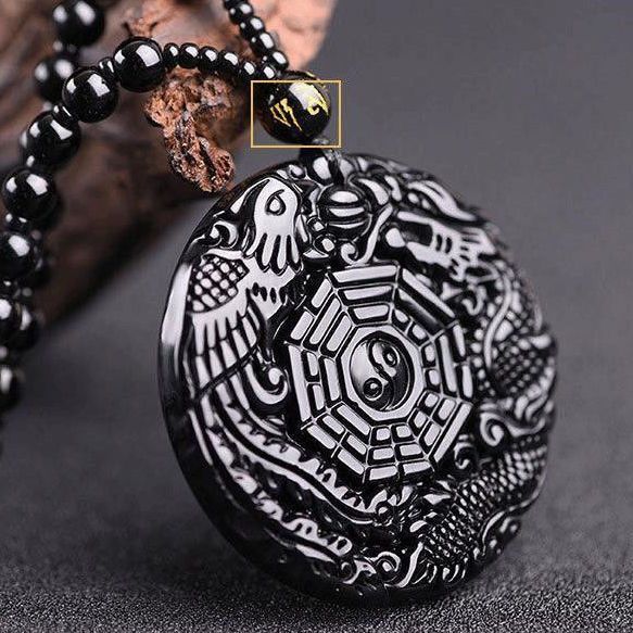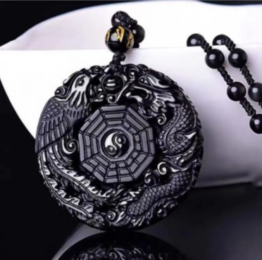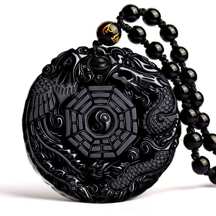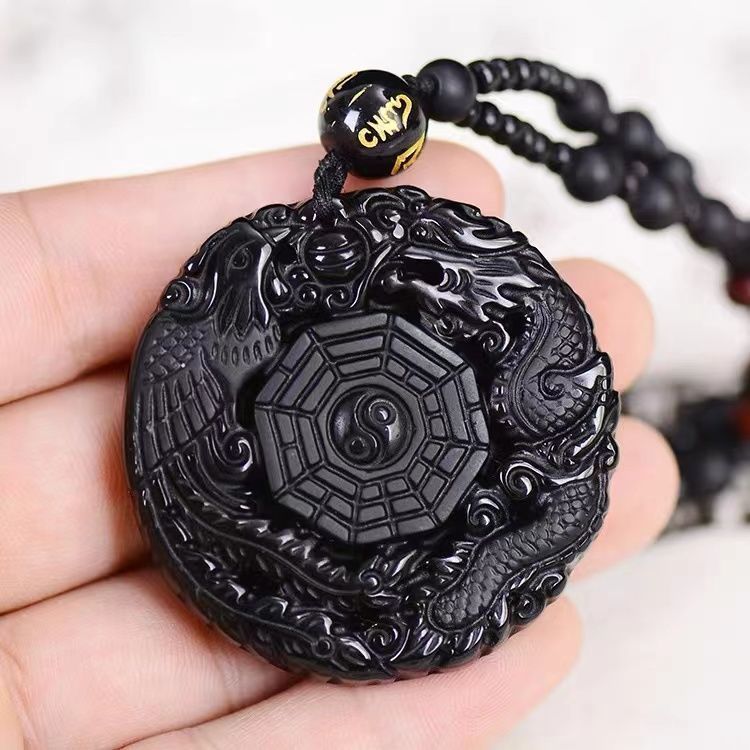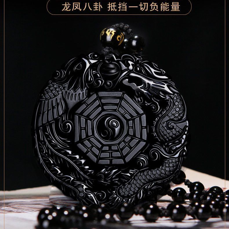 天然黑曜石龍鳳八卦牌吊墜太極男女款水晶項鍊男女款道家招財掛件