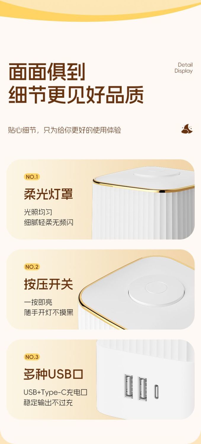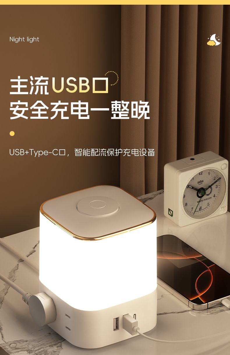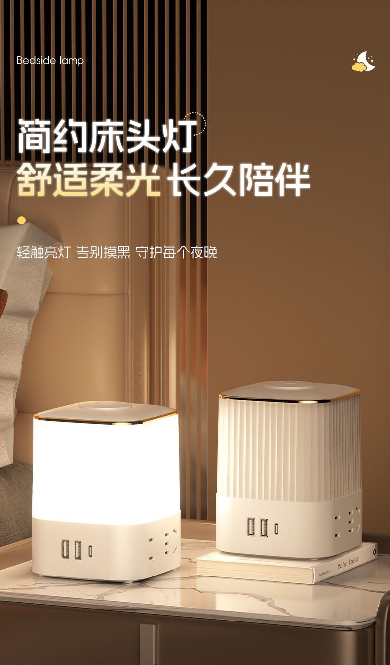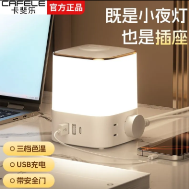 卡斐樂家用床頭燈小夜燈多功能帶 USB 插座台燈嬰兒餵奶臥室氛圍燈