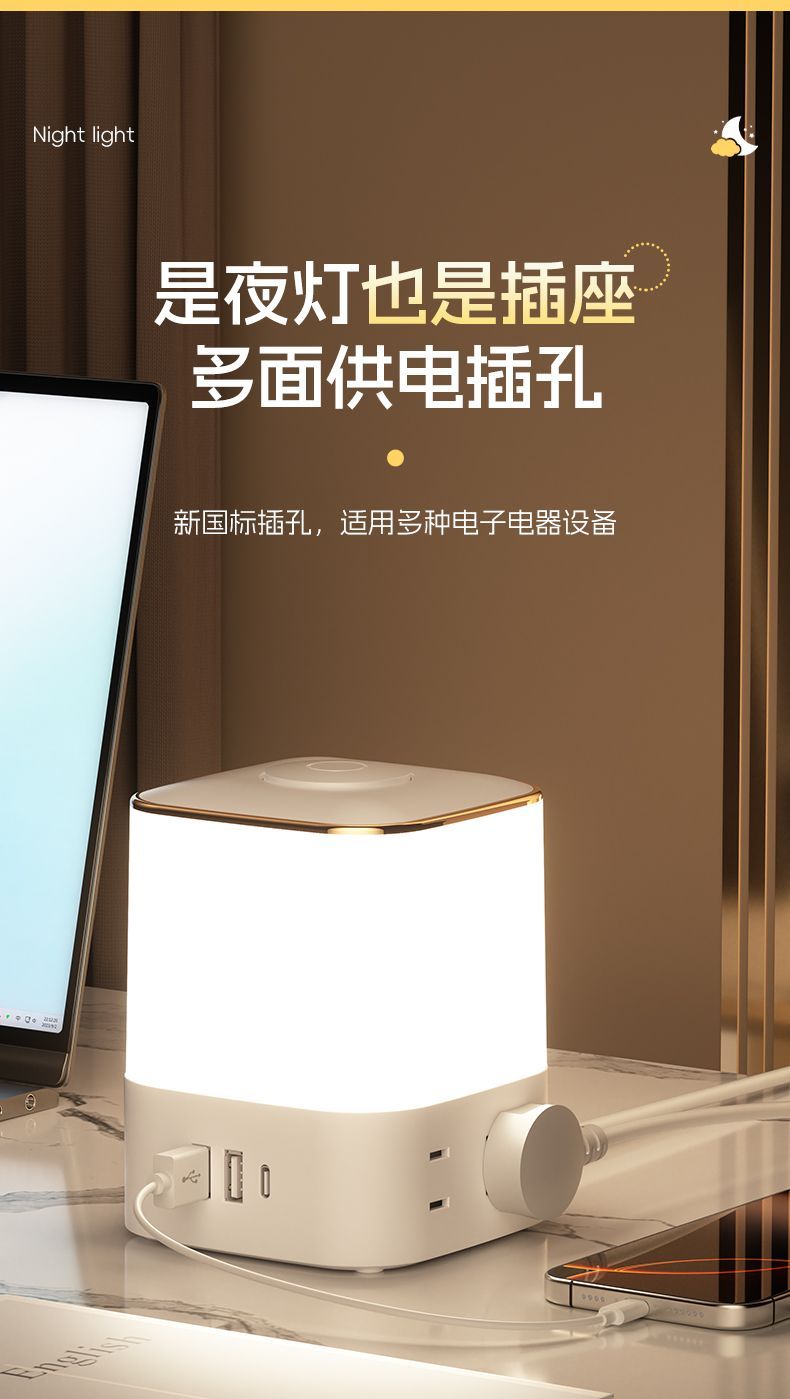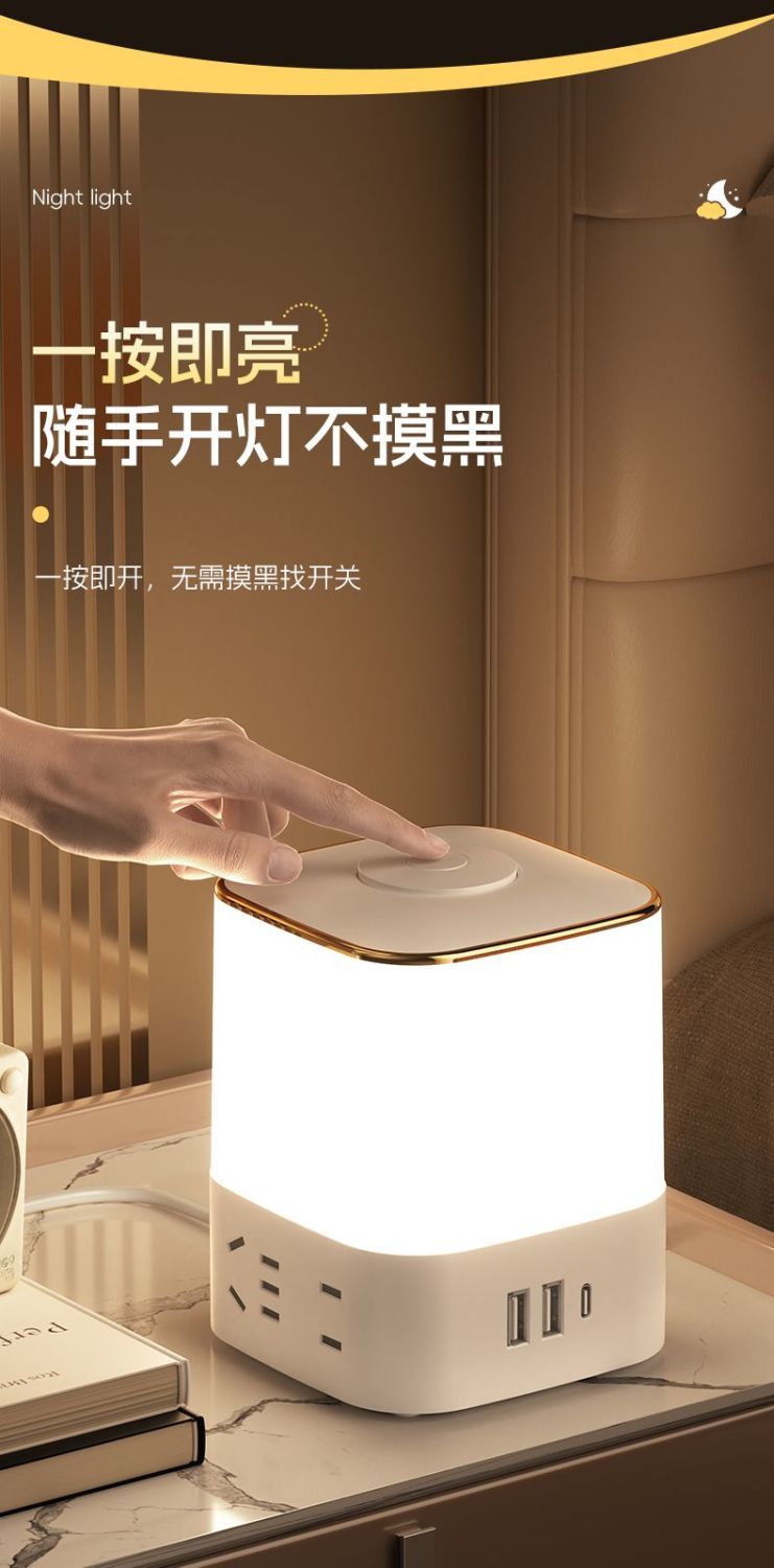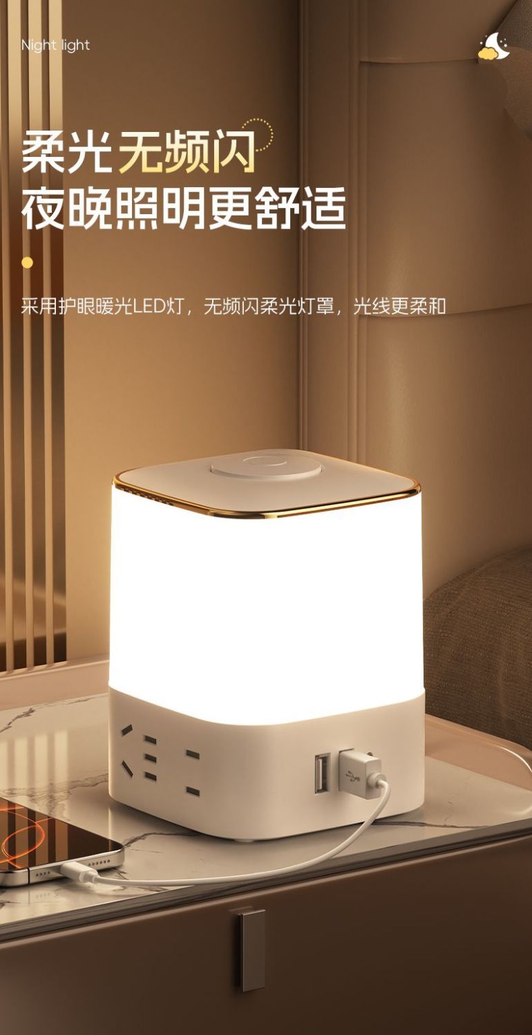 卡斐樂家用床頭燈小夜燈多功能帶 USB 插座台燈嬰兒餵奶臥室氛圍燈