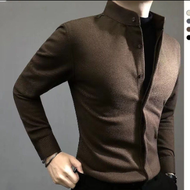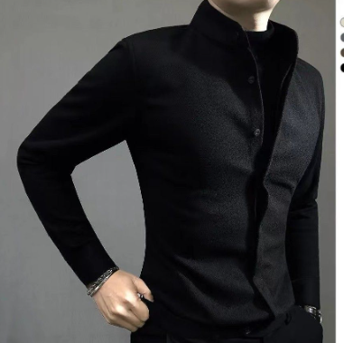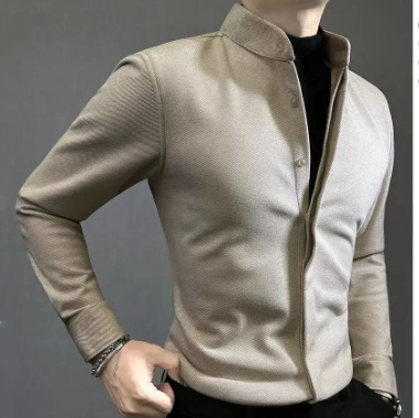 毛呢保暖男士長袖襯衫 2025 秋冬新款痞帥高級輕奢修身百搭帥氣襯衣