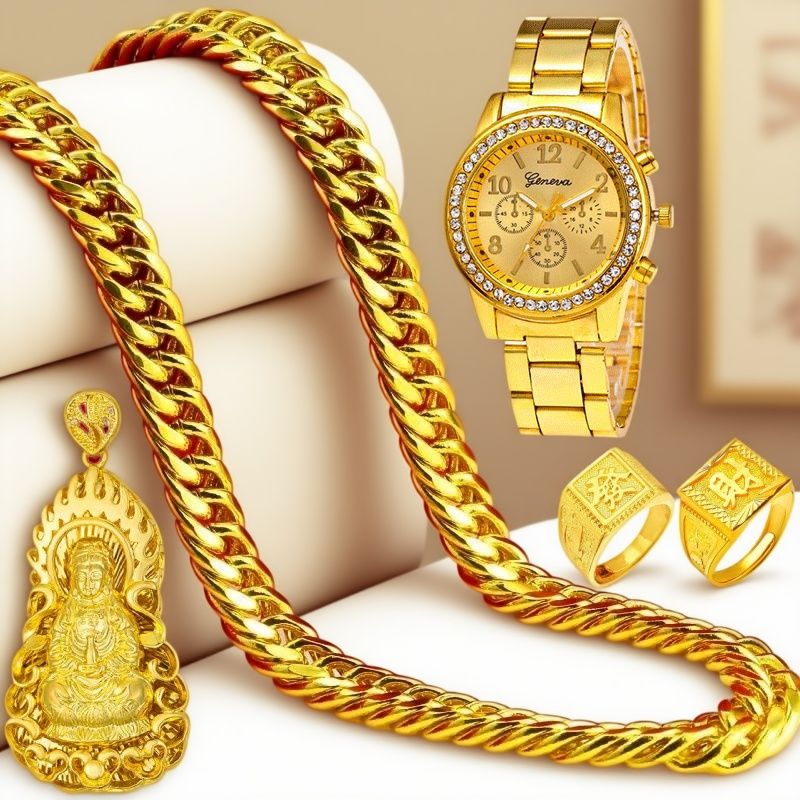新款项鏈送禮金錶套裝越南沙金男經久不掉色