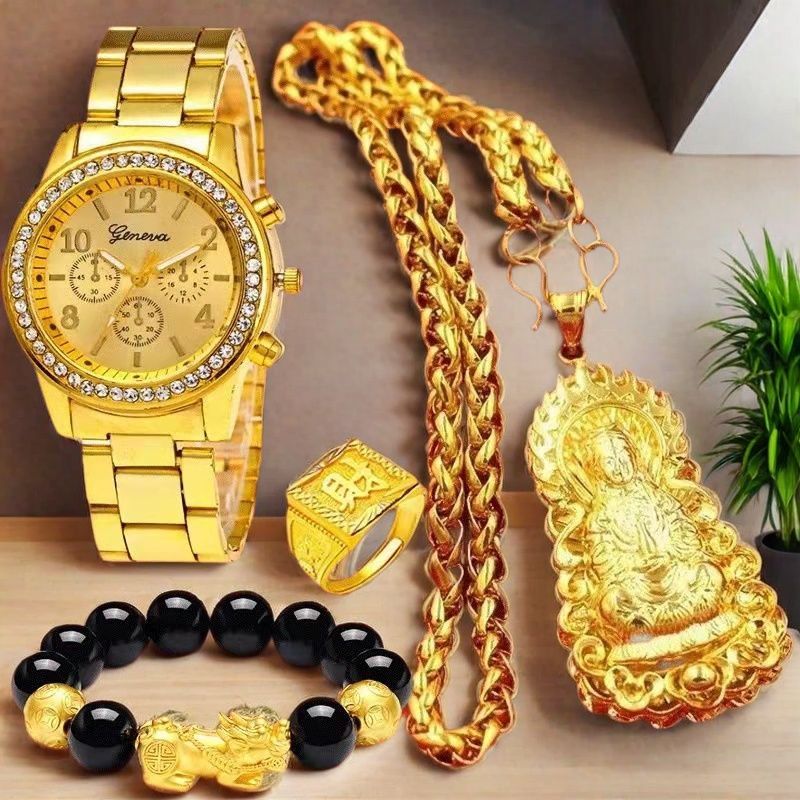新款项鏈送禮金錶套裝越南沙金男經久不掉色 - 男神項鍊 [新款五件套] 推薦