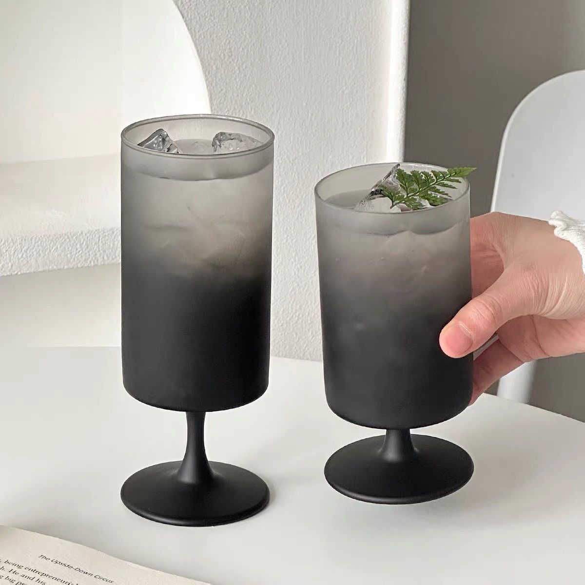 直筒高腳杯 - 磨砂黑矮款【2 只裝】