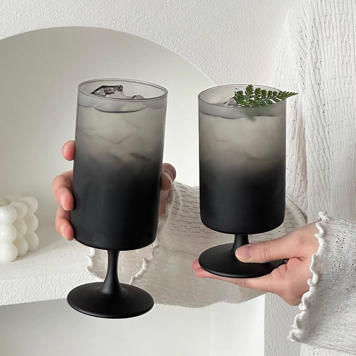 高級感磨砂黑高腳玻璃杯創意家用直筒果汁杯咖啡杯飲料杯雞尾酒杯