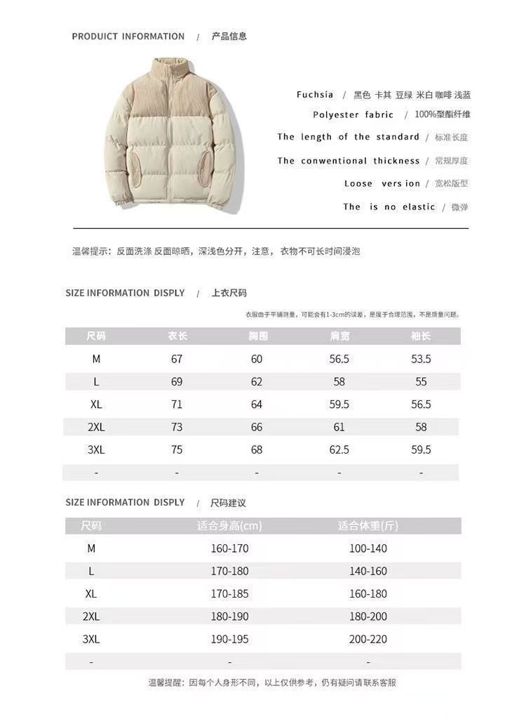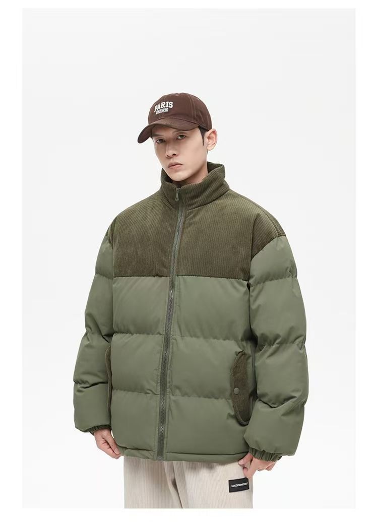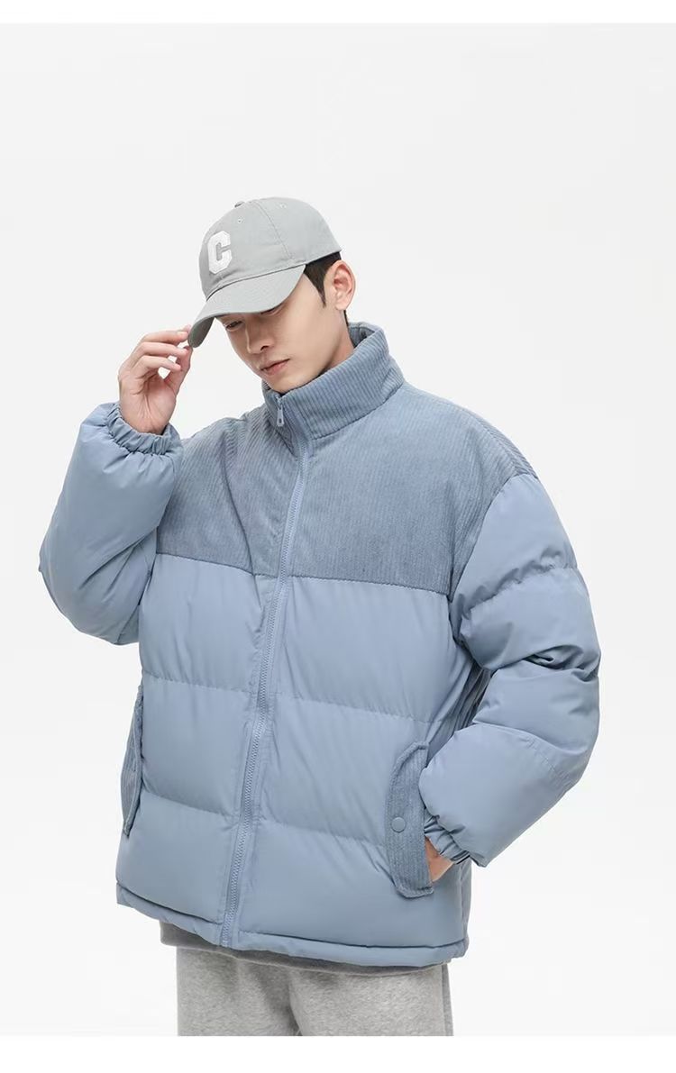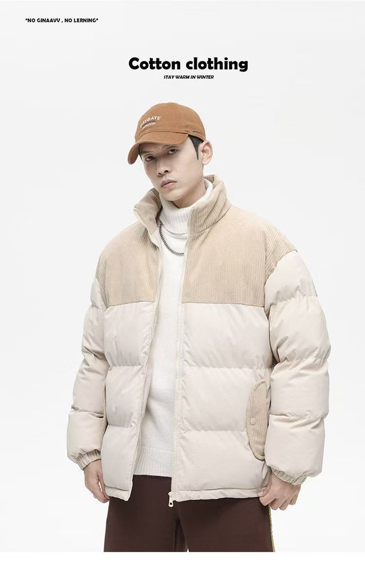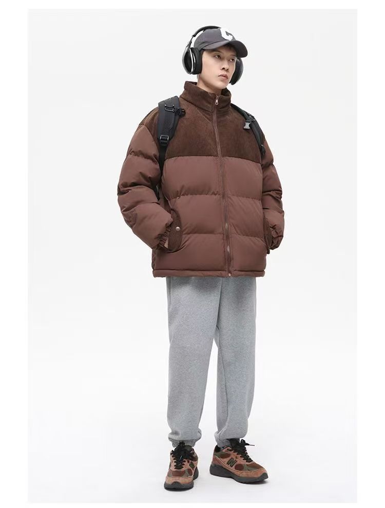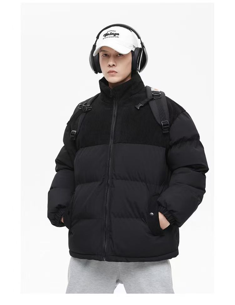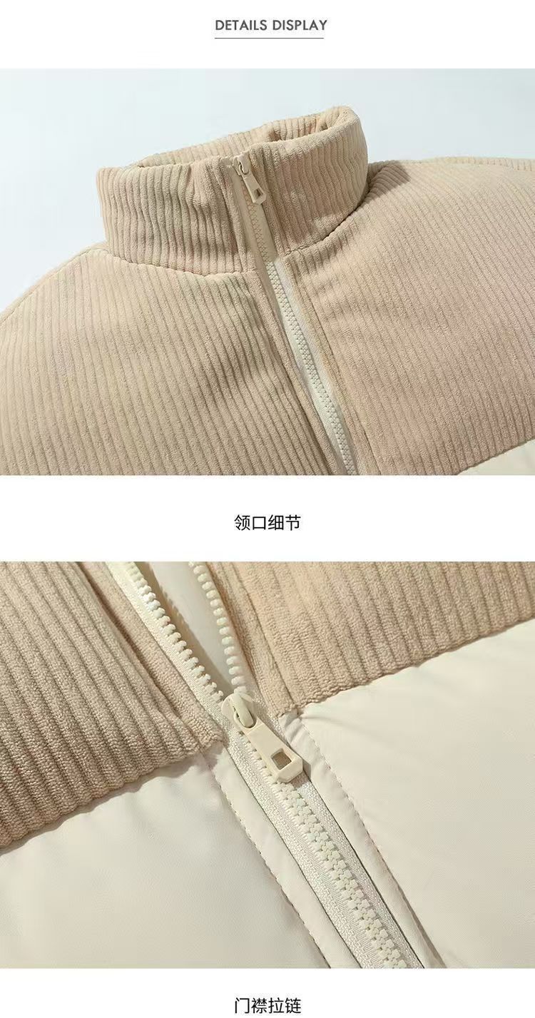 立領潮流休閒寬鬆百搭棉衣燈芯絨情侶拼接保暖麵包棉服棉襖外套