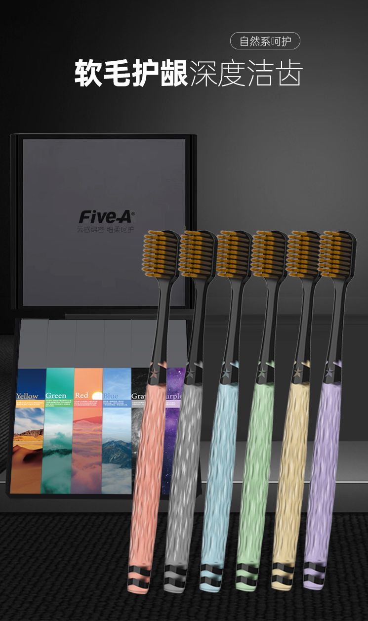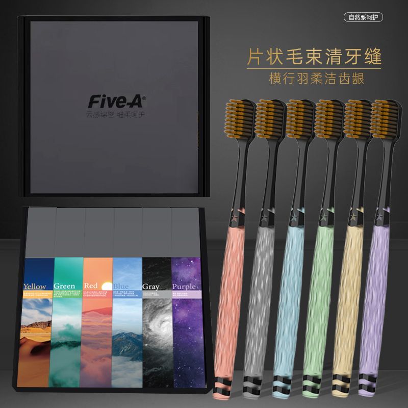 FIVE-A 高檔禮盒裝 1 盒 6 支裝高端輕奢家用軟毛牙刷高品質高質量牙刷
