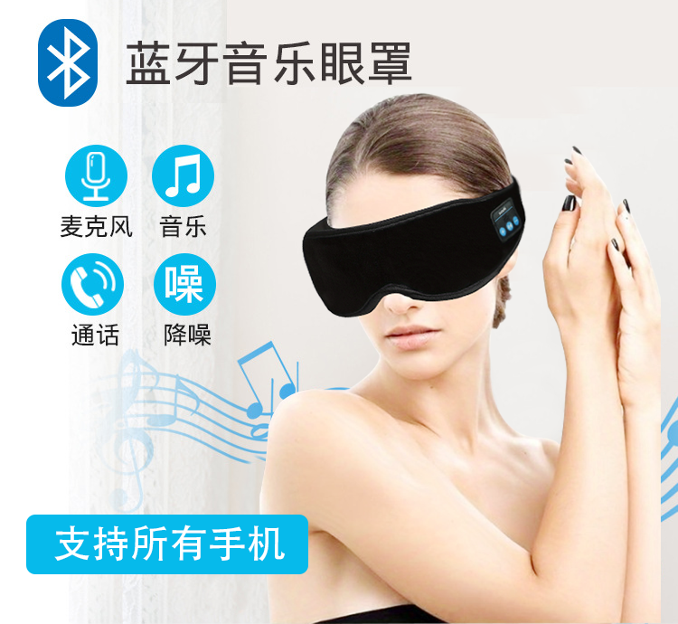 睡眠遮光通話聽歌無線藍牙音樂耳機眼罩頭帶超輕記憶純棉助眠神器