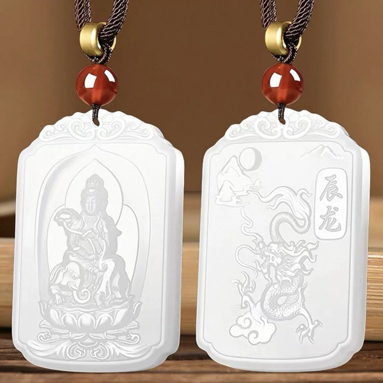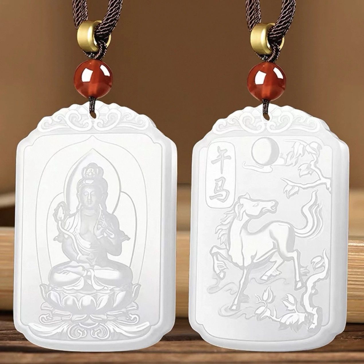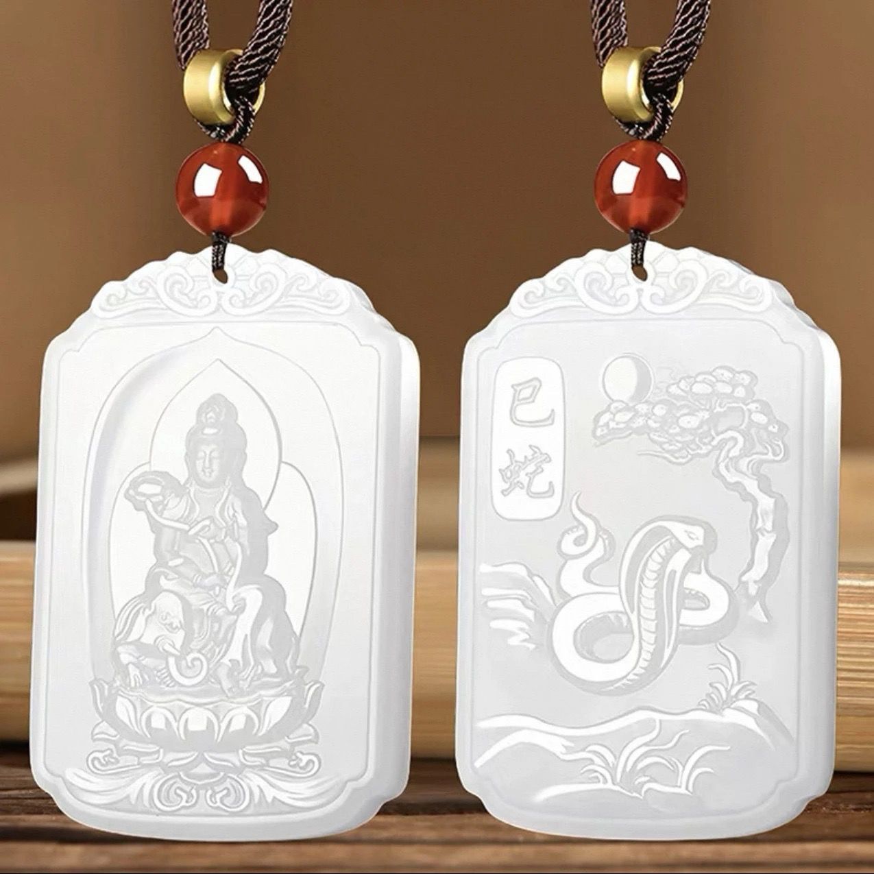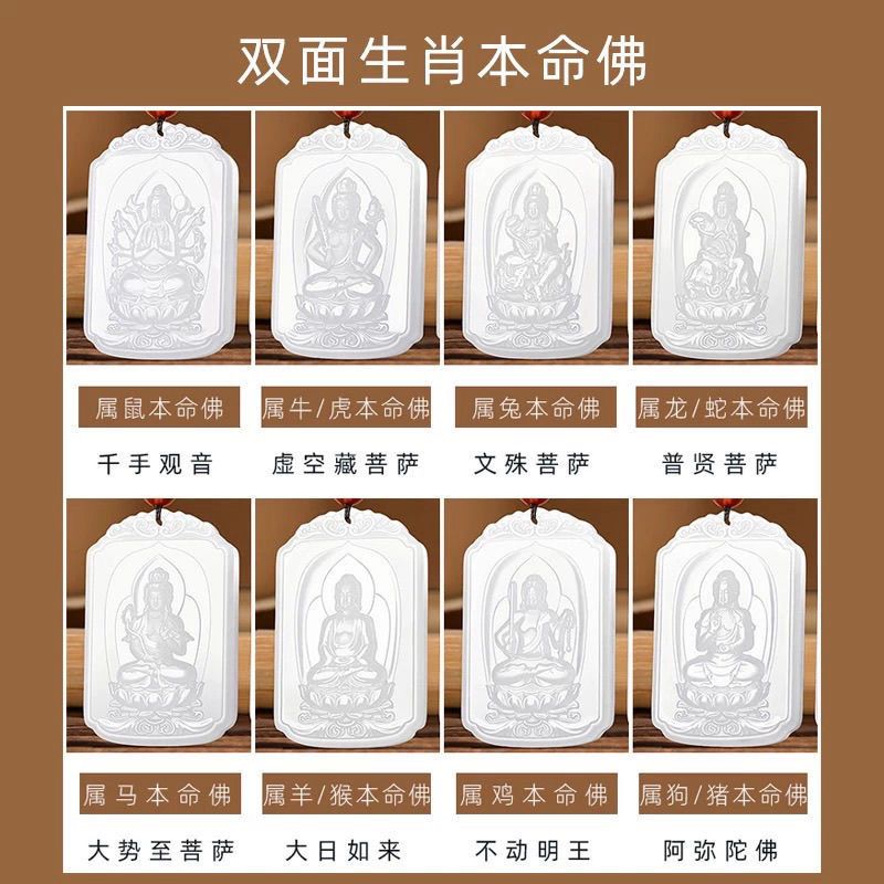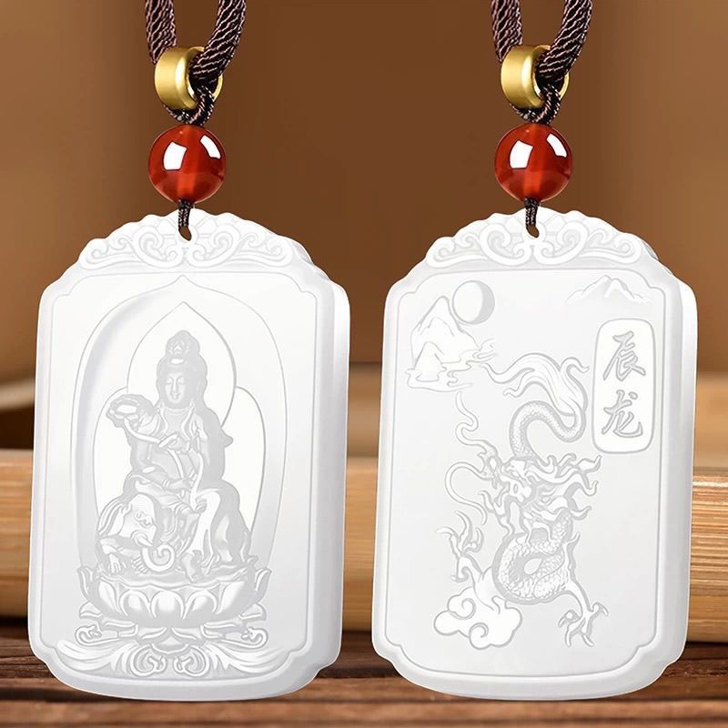 和田玉羊脂白玉普賢菩薩吊墜男女款生肖龍蛇本命佛掛件守護神新款