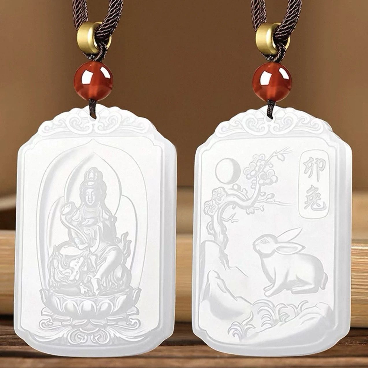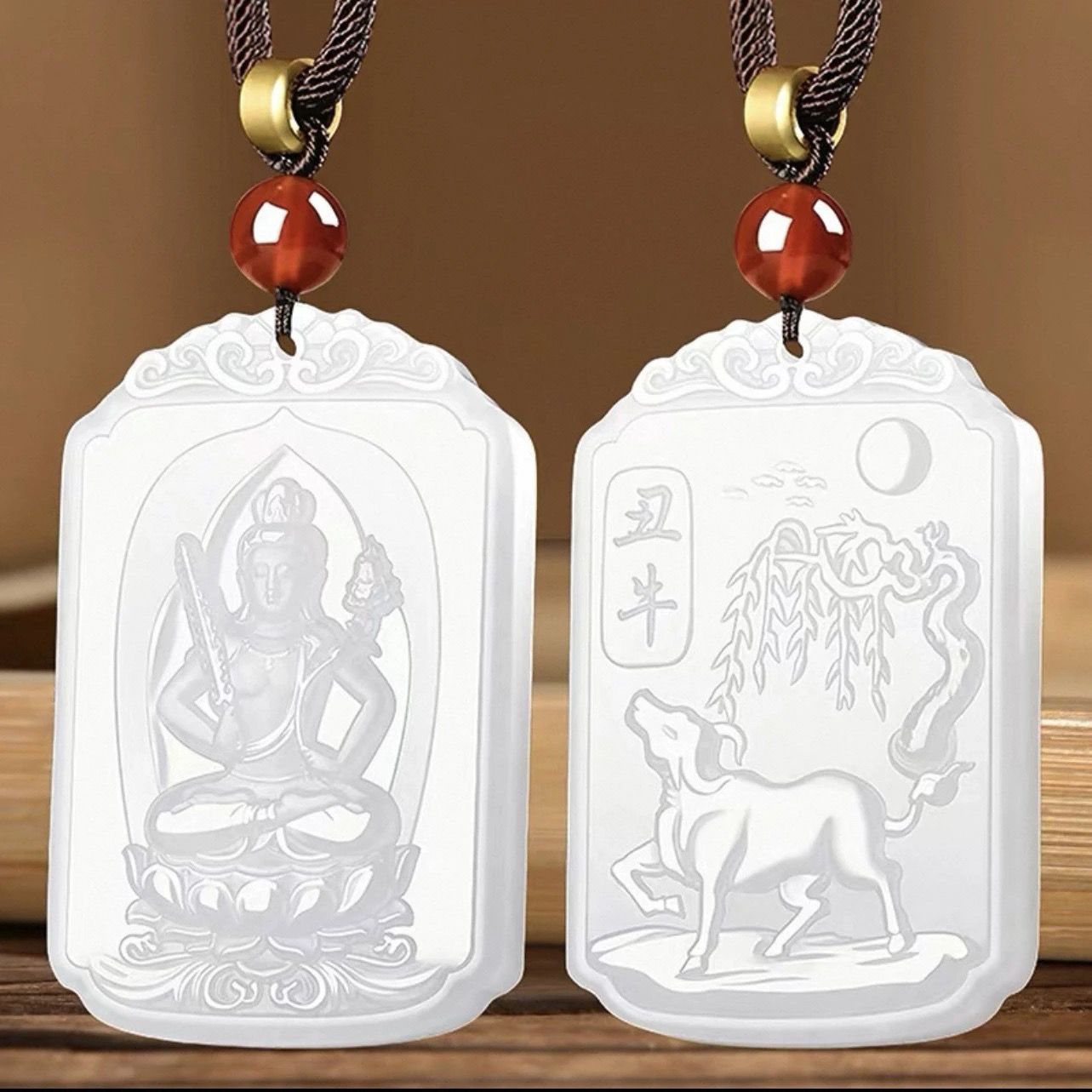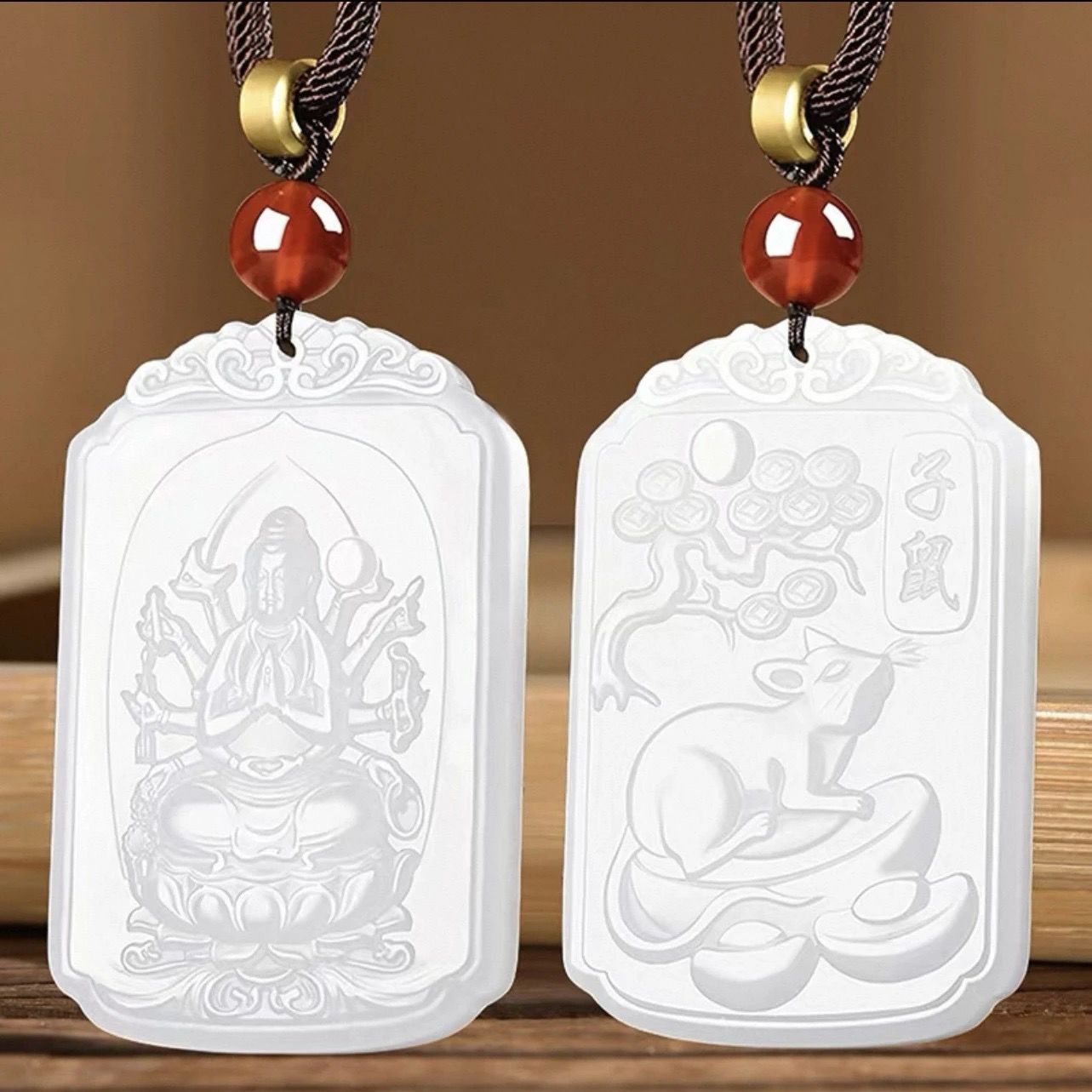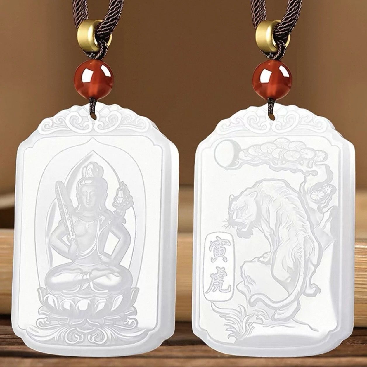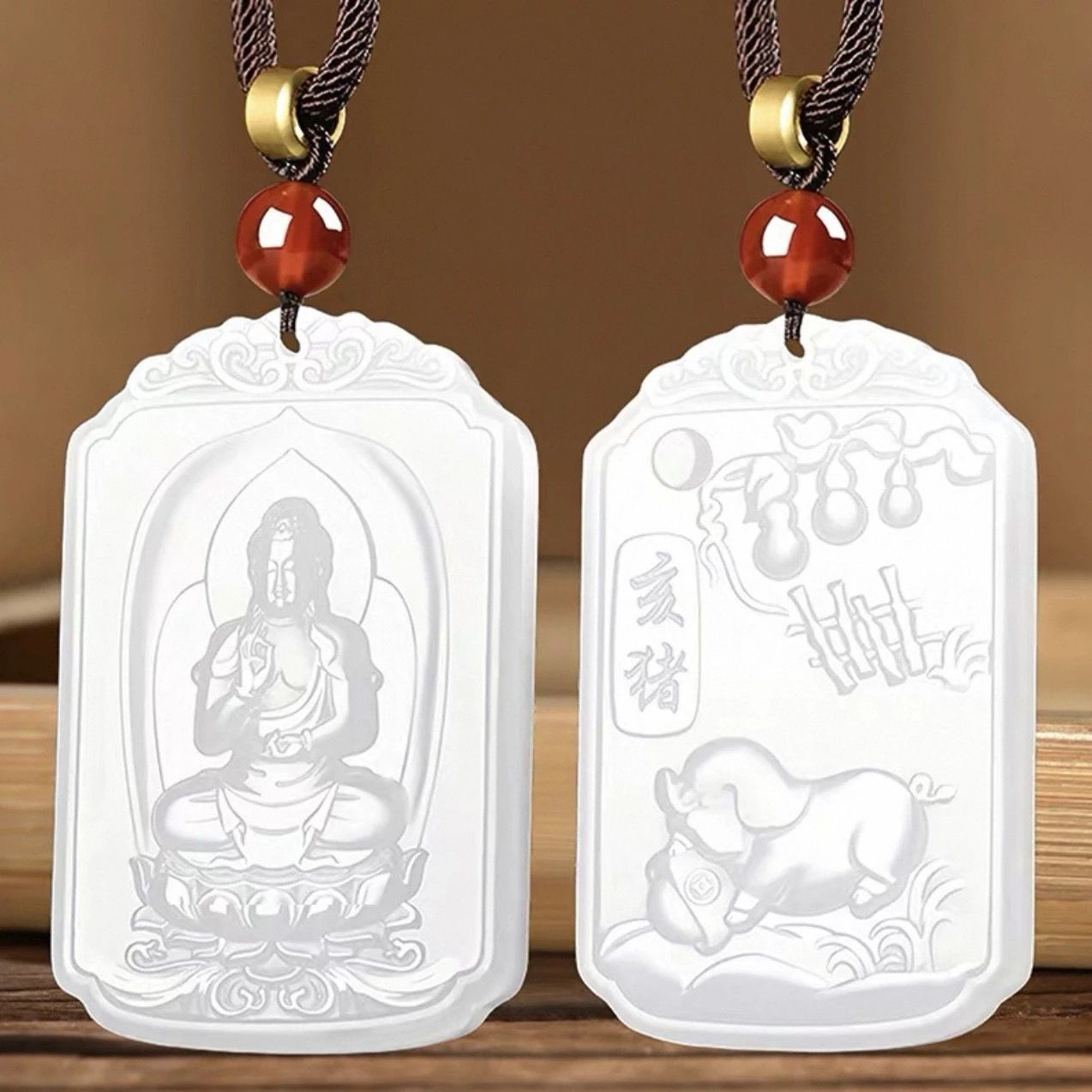 和田玉羊脂白玉普賢菩薩吊墜男女款生肖龍蛇本命佛掛件守護神新款